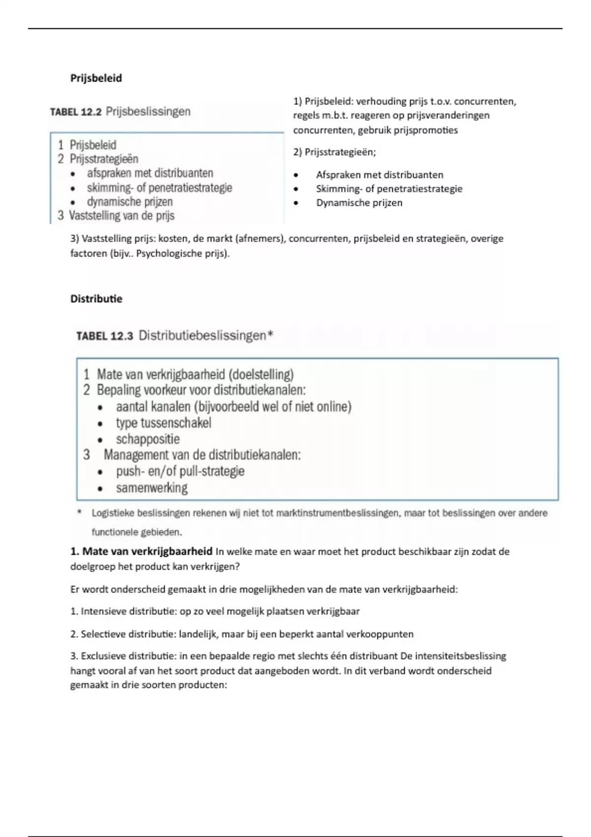 1) Prijsbeleid: verhouding prijs t.o.v. concurrenten,