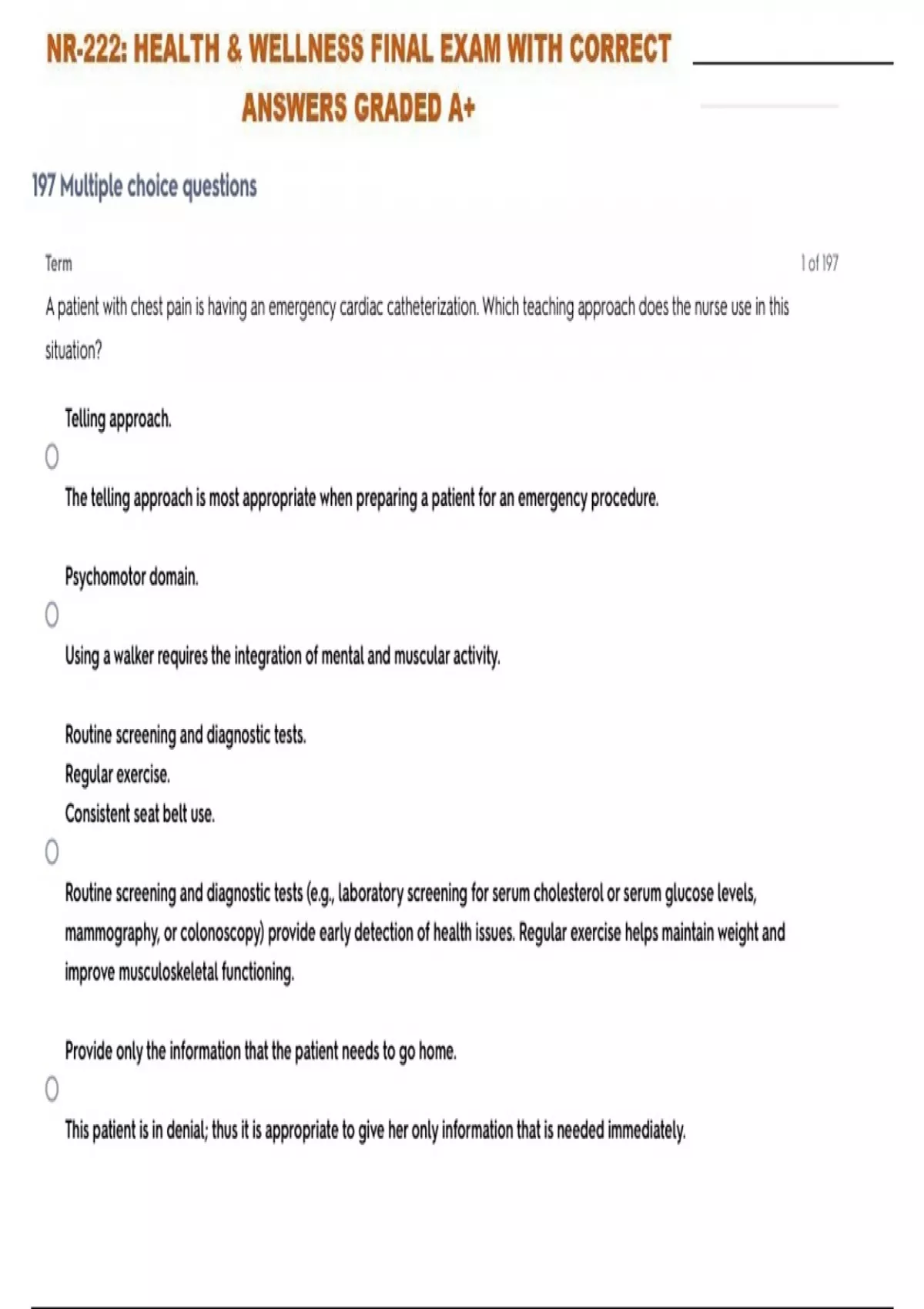 NR-222: HEALTH & WELLNESS FINAL EXAM WITH CORRECT ANSWERS GRADED A+