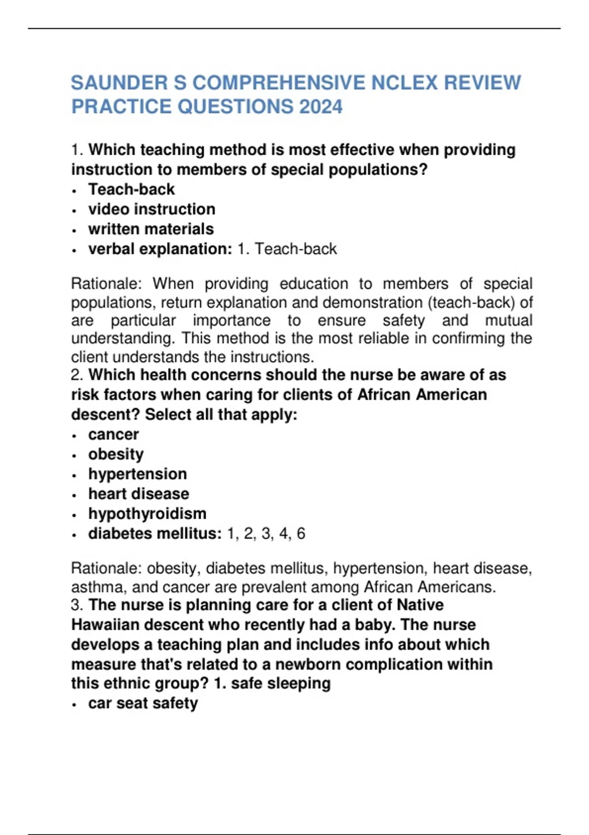 SAUNDER S COMPREHENSIVE NCLEX REVIEW PRACTICE QUESTIONS 2024