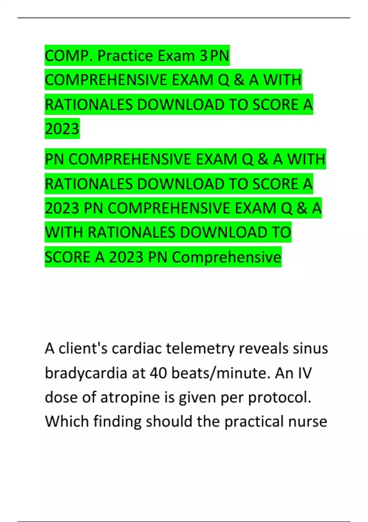 COMP. Practice Exam 3 PN COMPREHENSIVE EXAM Q & A WITH RATIONALES DOWNLOAD TO SCORE A 2023 PN COMPREHENSIVE EXAM Q & A WITH RATIONALES DOWNLOAD TO SCORE A 2023 PN COMPREHENSIVE EXAM Q & A WITH RATIONALES DOWNLOAD TO SCORE A 2023 PN Comprehensive