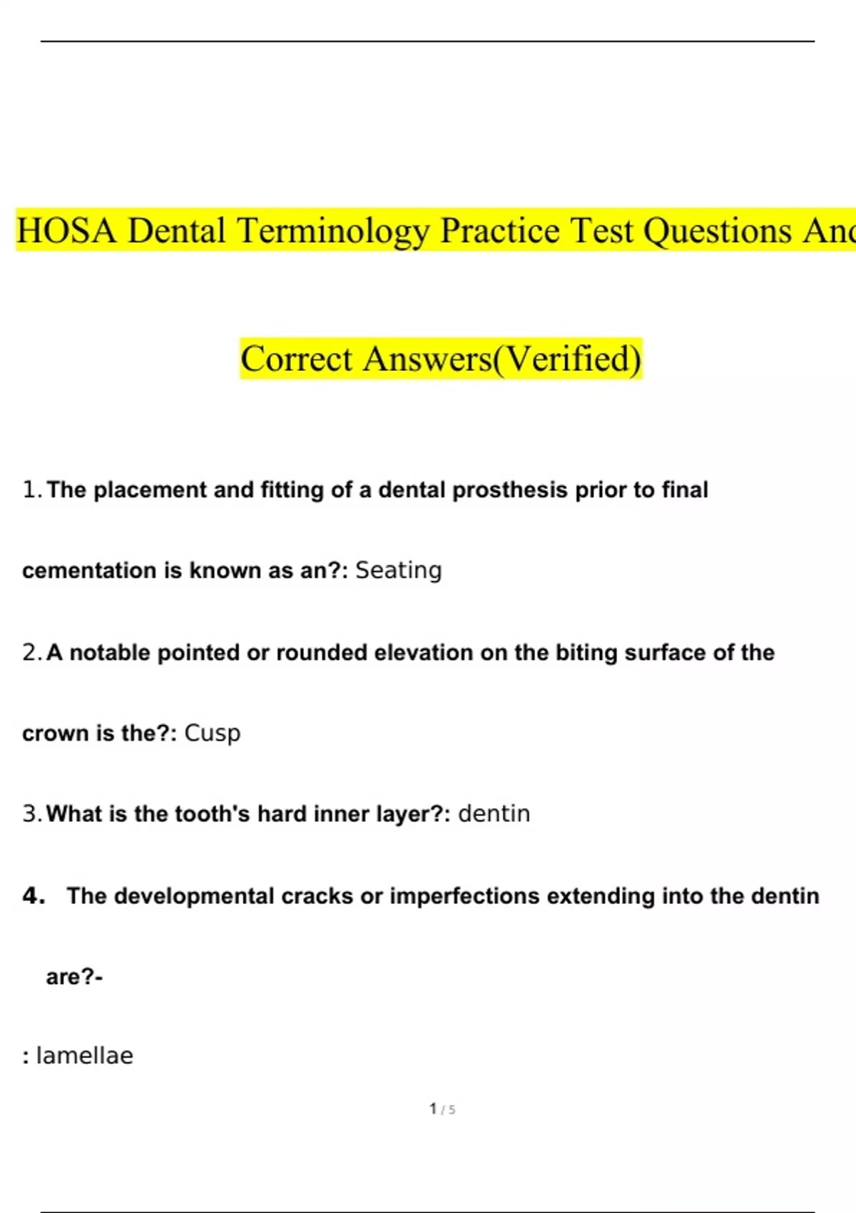 HOSA Dental Terminology Practice Test Questions and Answers (Verified Answers)