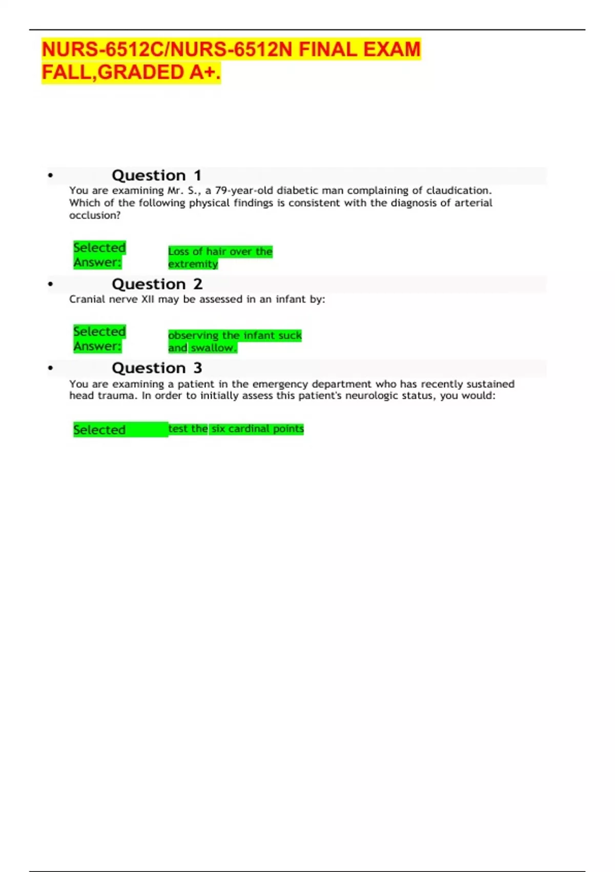NURS-6512C/NURS-6512N FINAL EXAM FALL,GRADED A+.