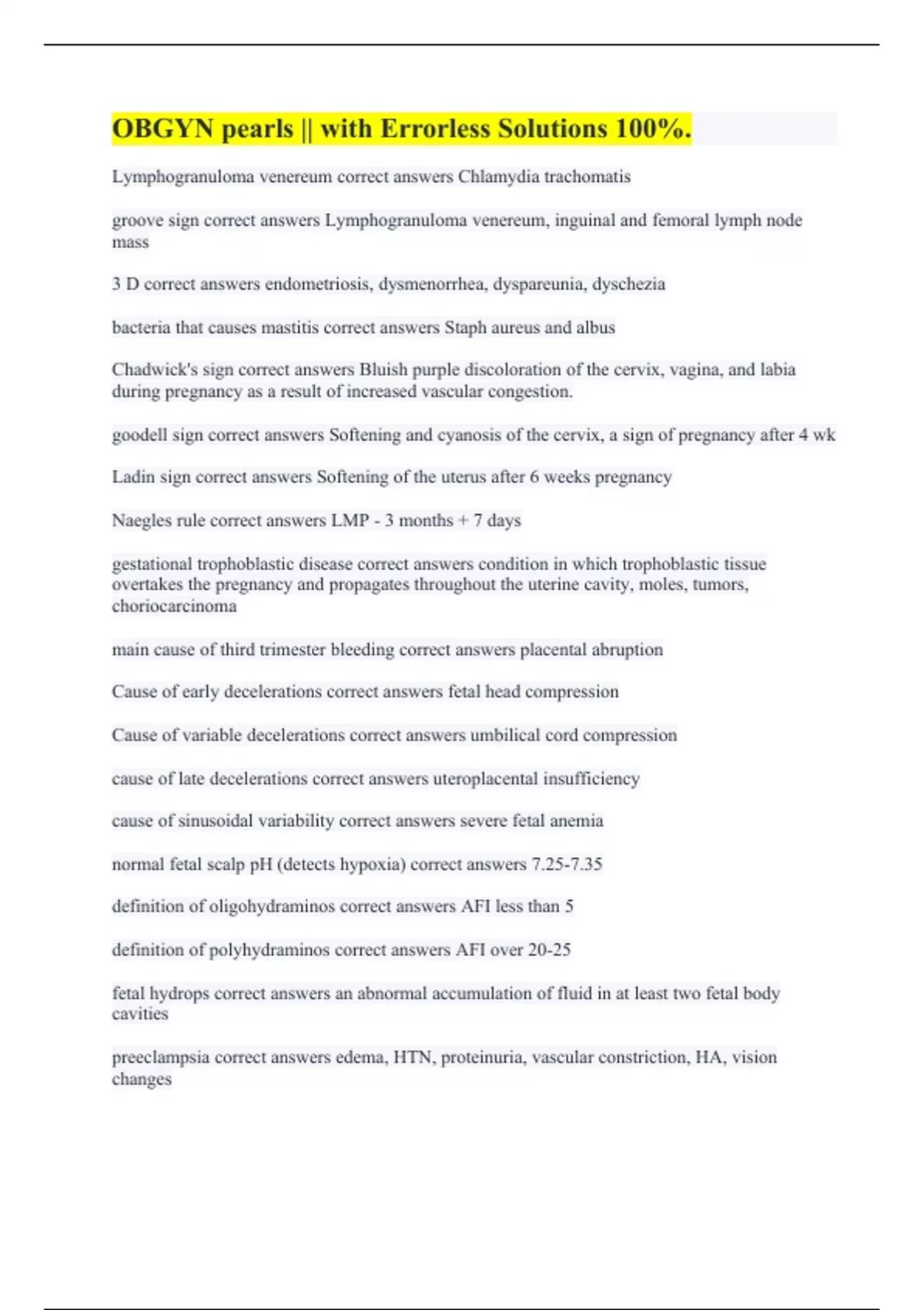 OBGYN pearls || with Errorless Solutions 100%.
