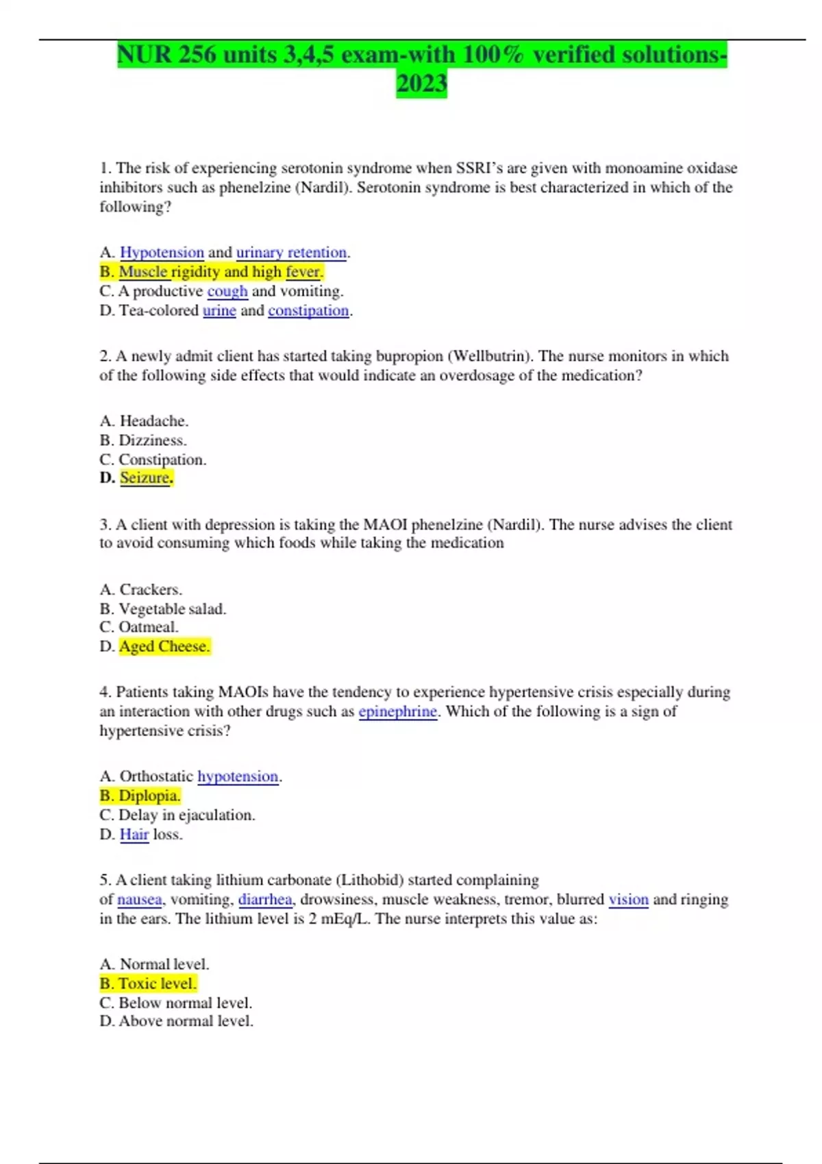 NUR 256 units 3,4,5 exam-with 100% verified solutions2023