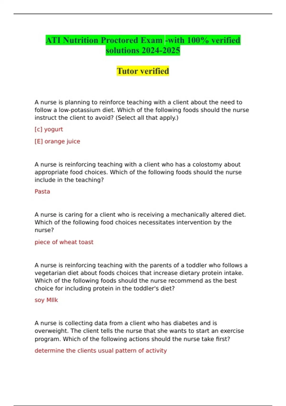 ATI Nutrition Proctored Exam -with 100% verified solutions