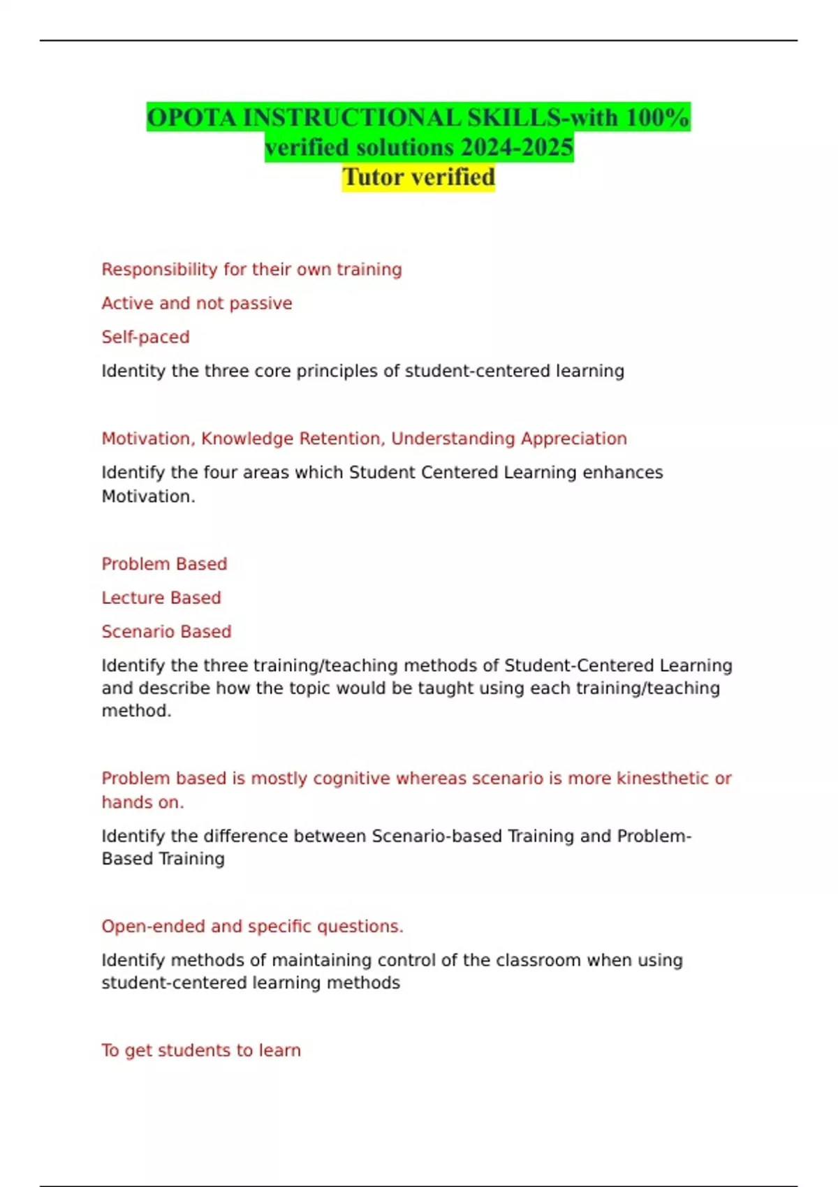 OPOTA INSTRUCTIONAL SKILLS-with 100% verified solutions