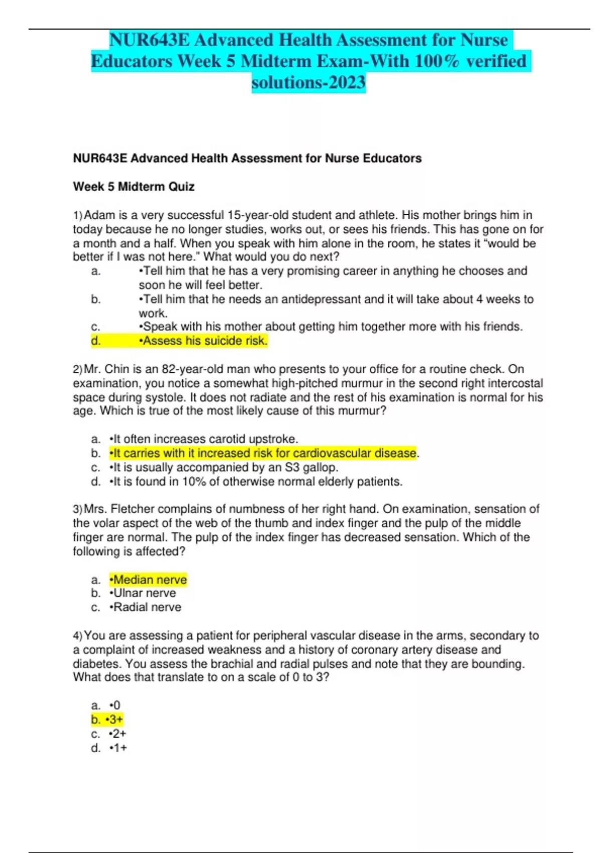 NUR643E Advanced Health Assessment for Nurse Educators Week 5 Midterm Exam-With 100% verified solutions-2023