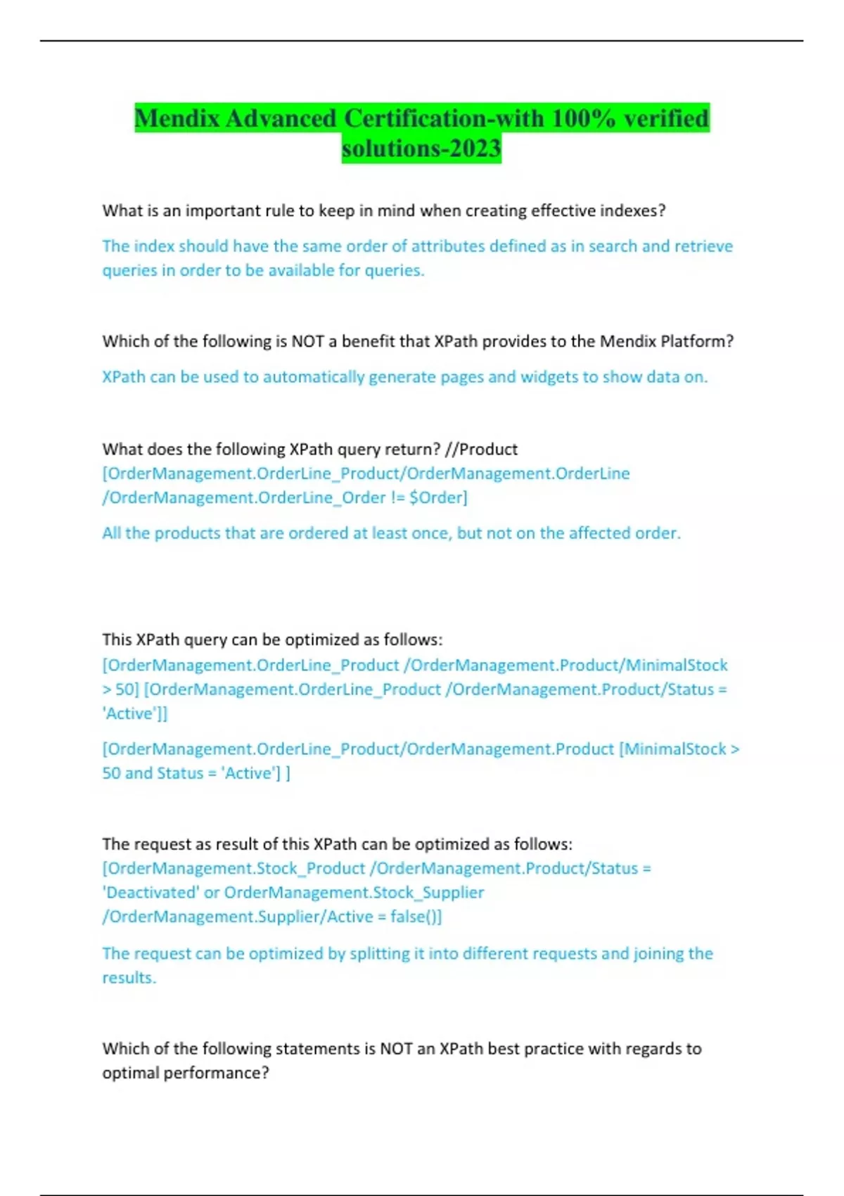Mendix Advanced Certification-with 100% verified solutions-2023