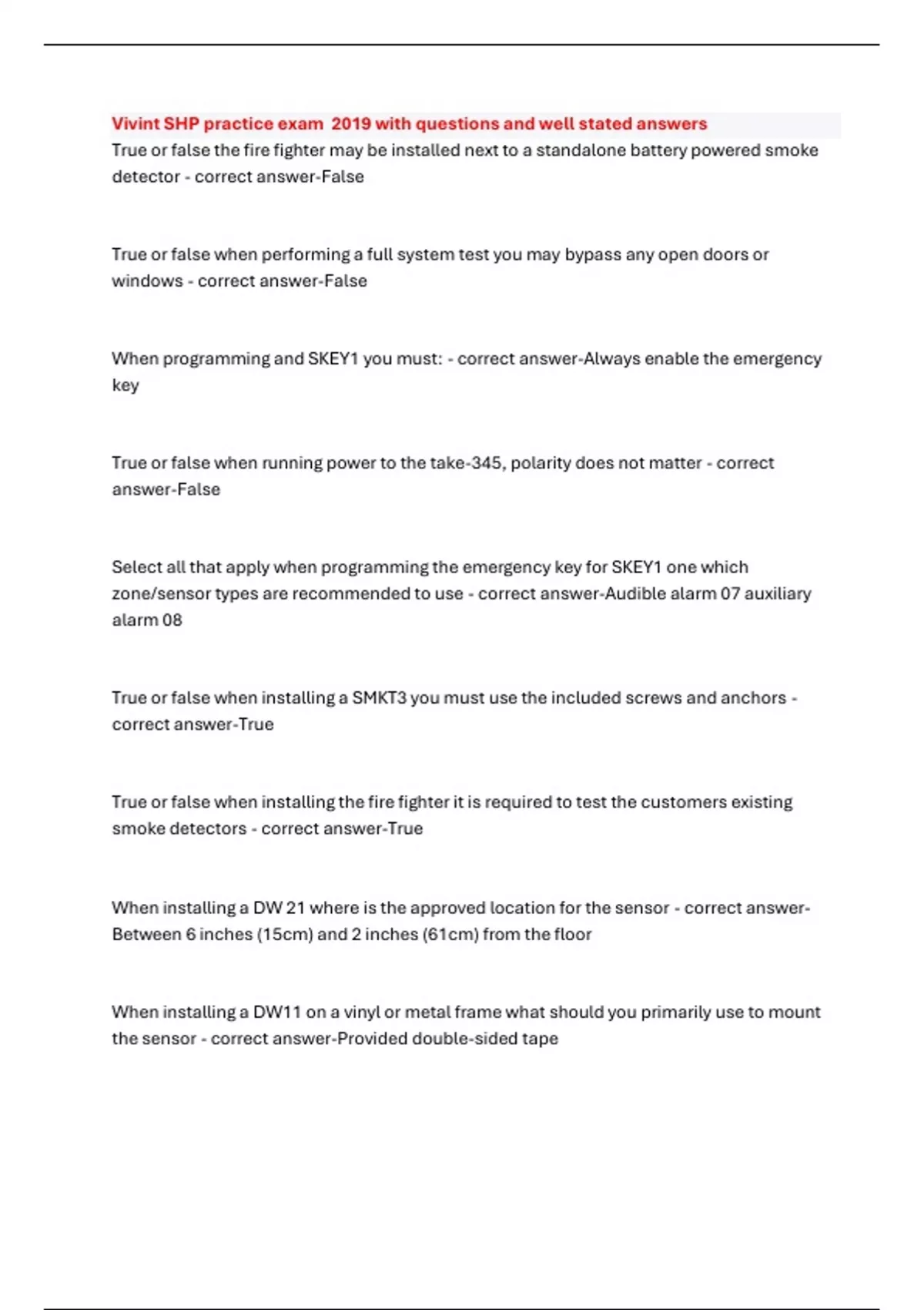 Vivint SHP practice exam 2019 with questions and well stated answers