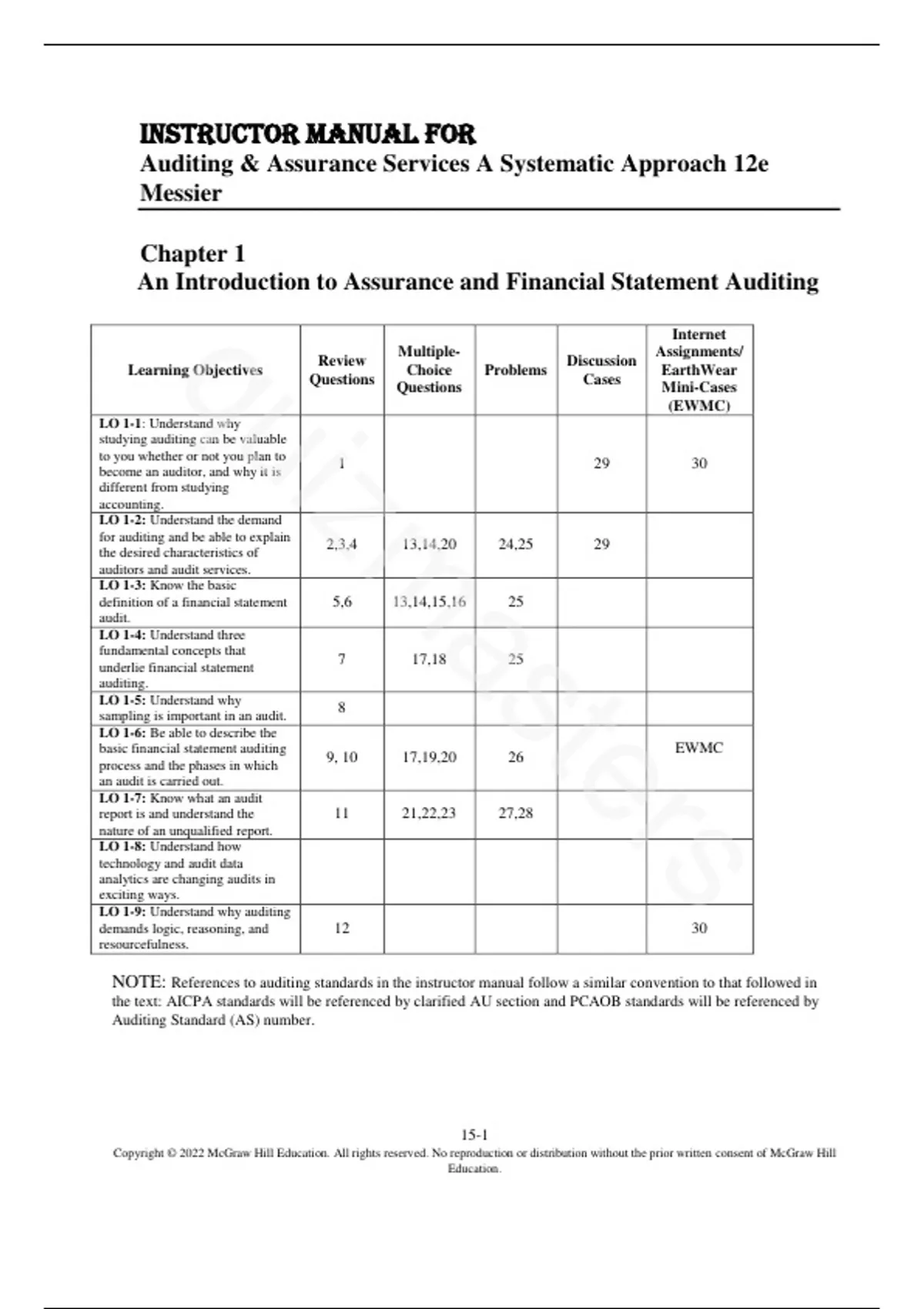 Instructor Manual For Auditing & Assurance Services A Systematic Approach 12th Edition by William Messier Jr, Steven Glover, Douglas Prawit