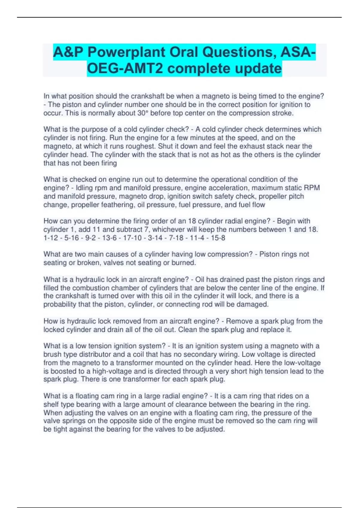 A&P Powerplant Oral Questions, ASA-OEG-AMT2 complete update
