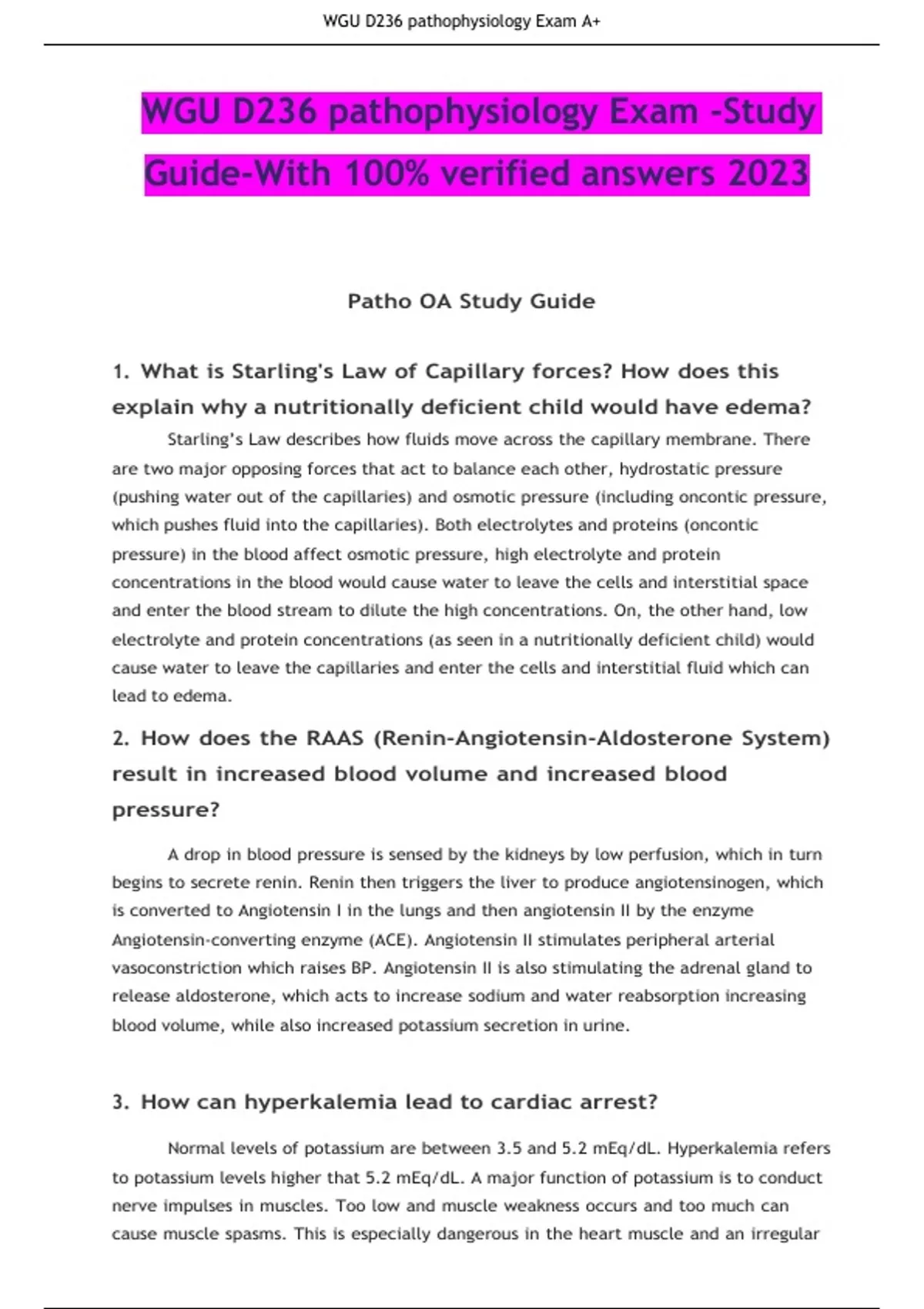 , WGU D236 pathophysiology Exam A+