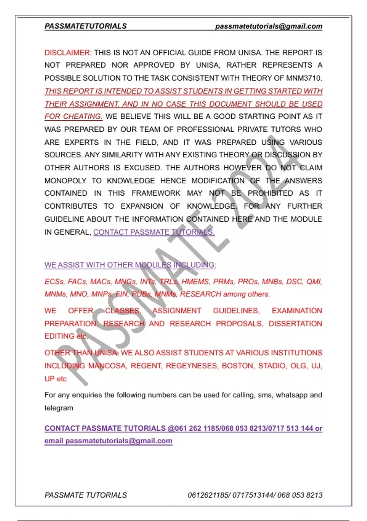 DISCLAIMER: THIS IS NOT AN OFFICIAL GUIDE FROM UNISA. THE REPORT IS