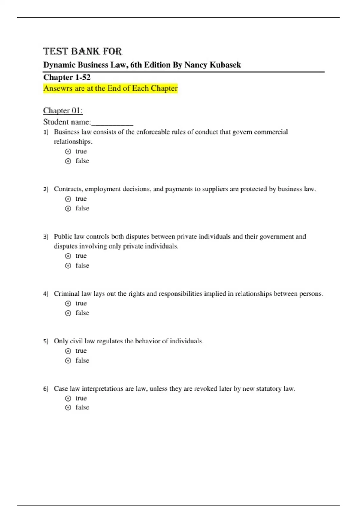 Dynamic Business Law, 6th Edition By Nancy Kubasek