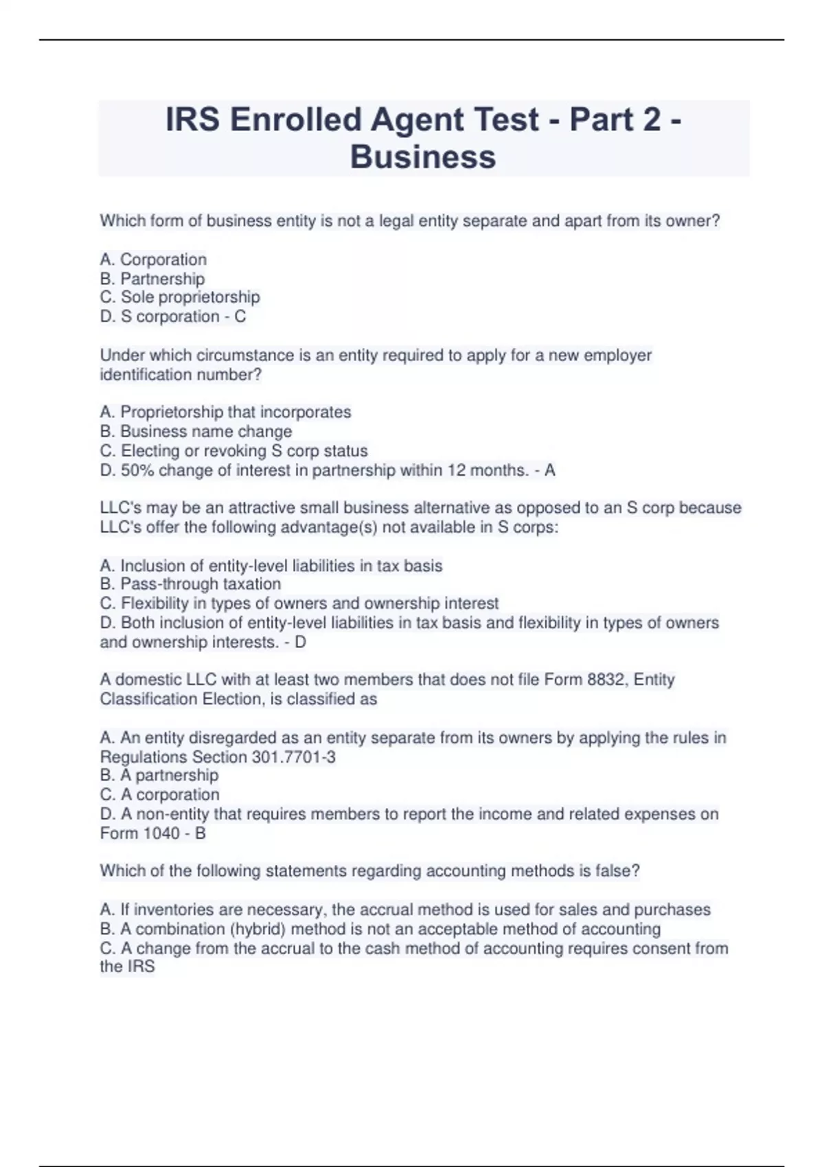IRS Enrolled Agent Test - Part 2 - Business