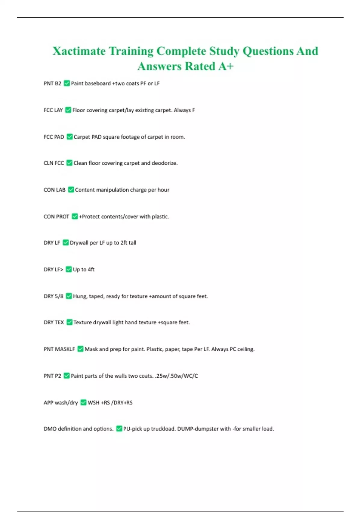 Xactimate Training Complete Study Questions And Answers Rated A+