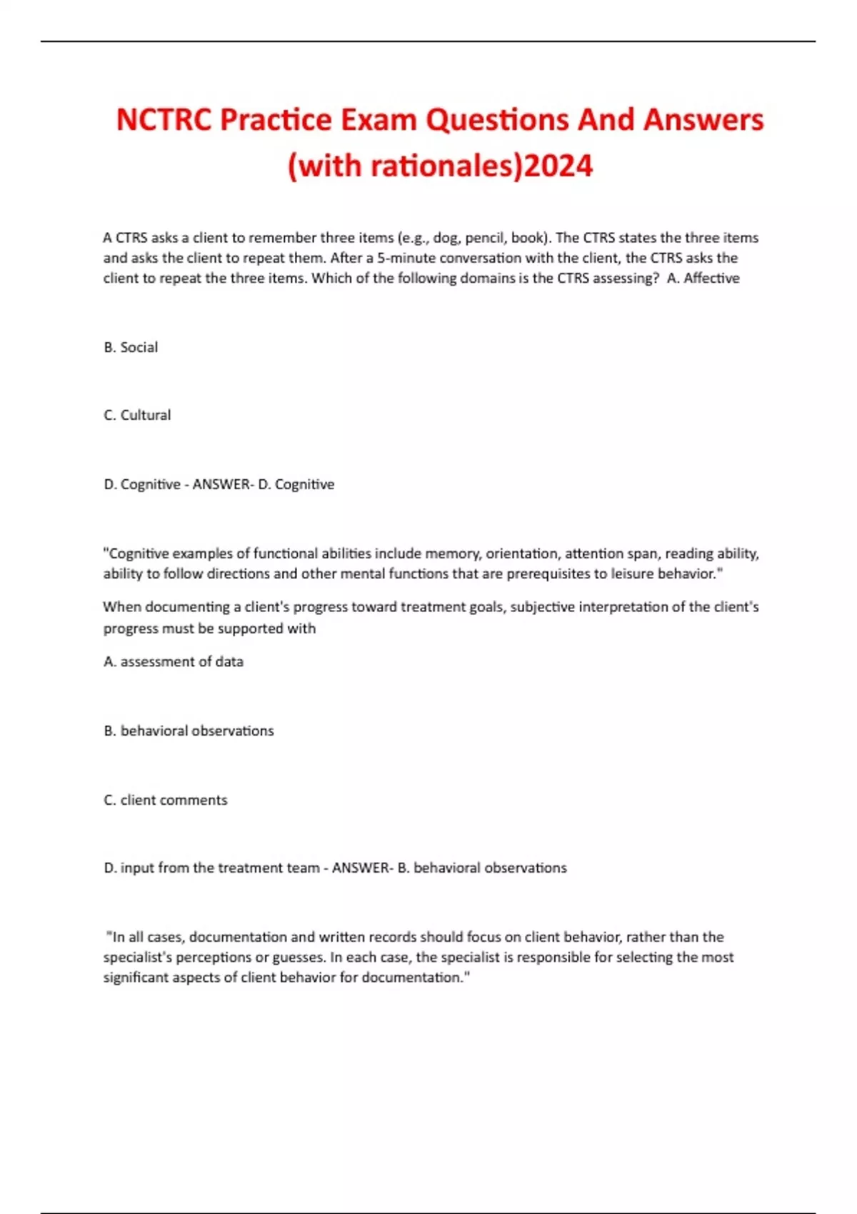 NCTRC Practice Exam Questions And Answers (with rationales)2024