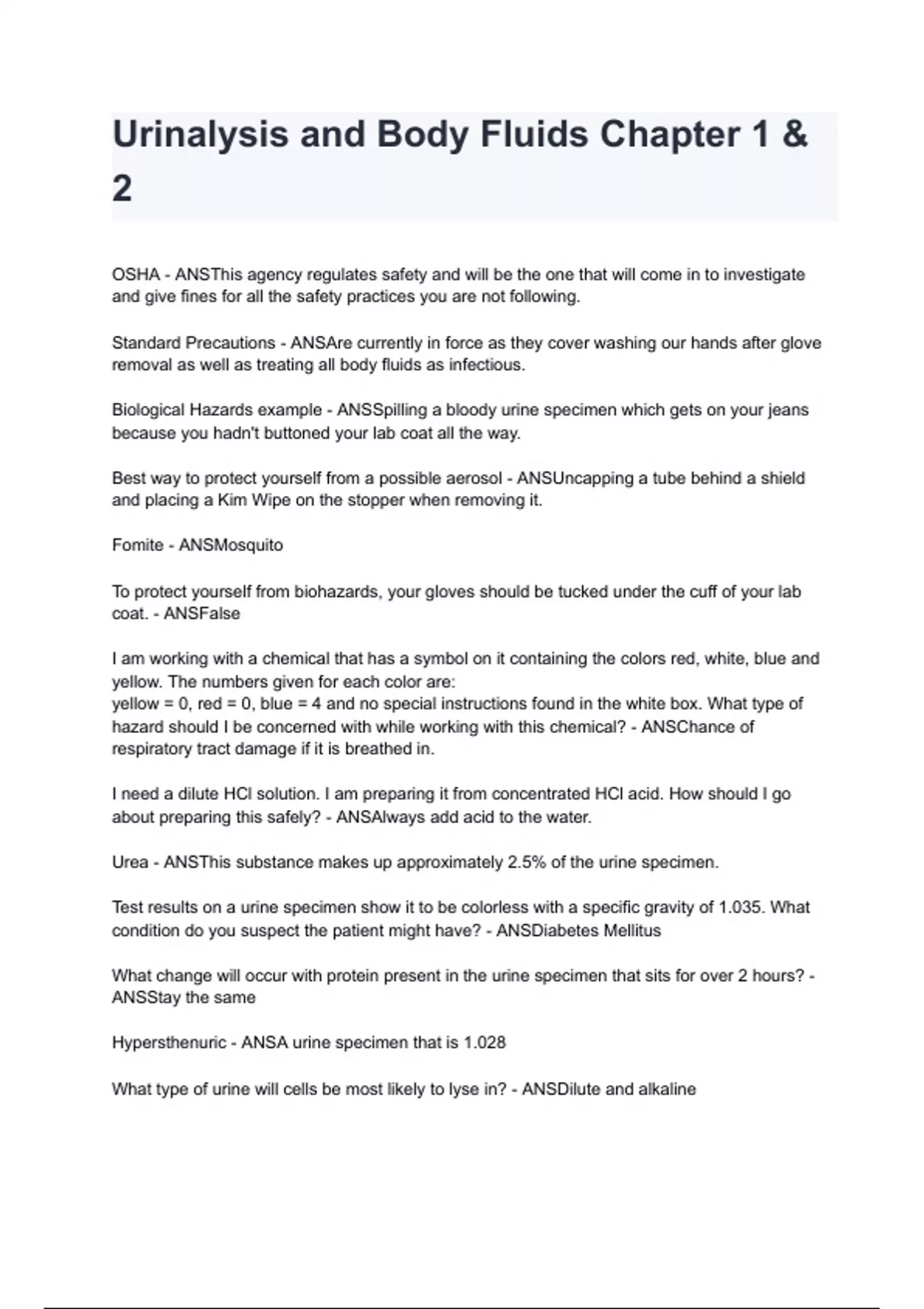 Urinalysis and Body Fluids Chapter 1 & 2 (100% verified) 2024/2025