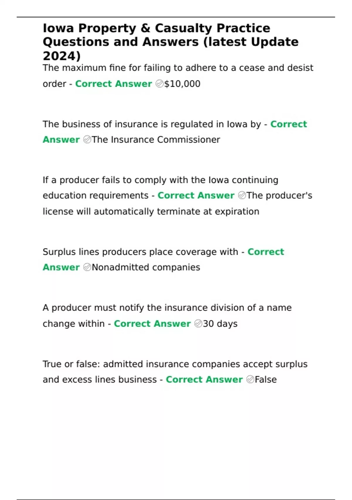 Iowa Property & Casualty Practice Questions and Answers (latest Update 2024)