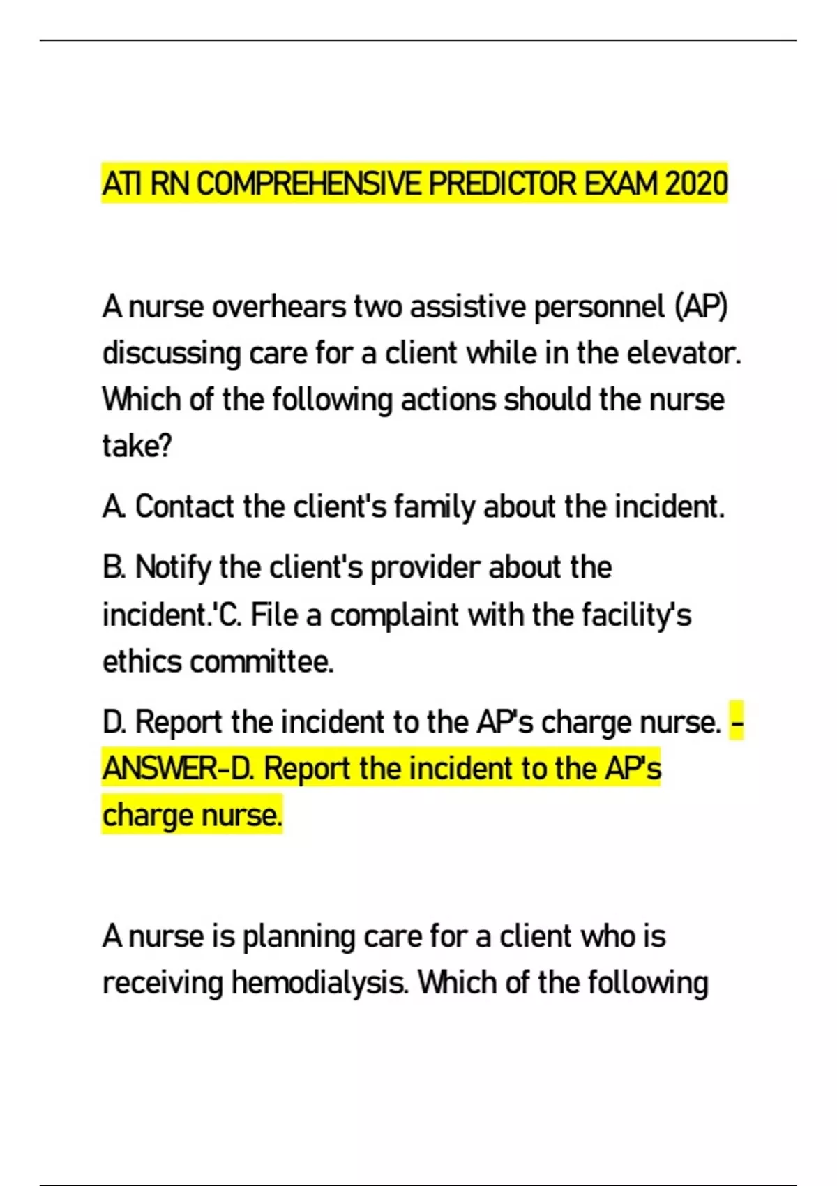 - ATI RN COMPREHENSIVE PREDICTO2020