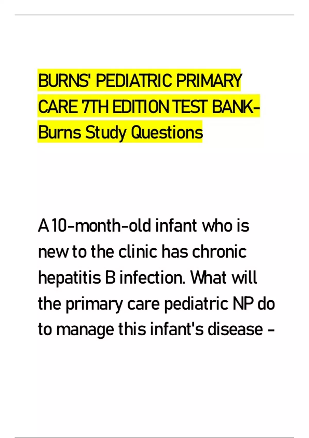 BURNS' PEDIATRIC PRIMARY CARE 7TH EDITION TEST BANKBurns Study Question