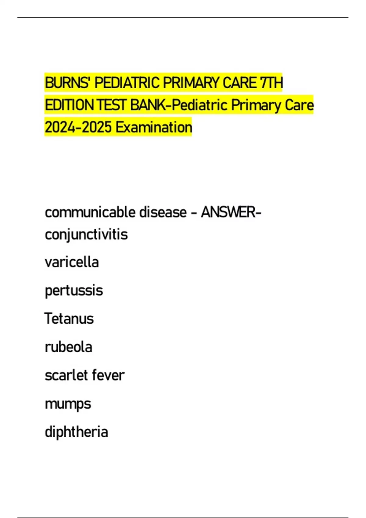 BURNS' PEDIATRIC PRIMARY CARE 7TH EDITION TEST BANK-Pediatric Primary Care Examination