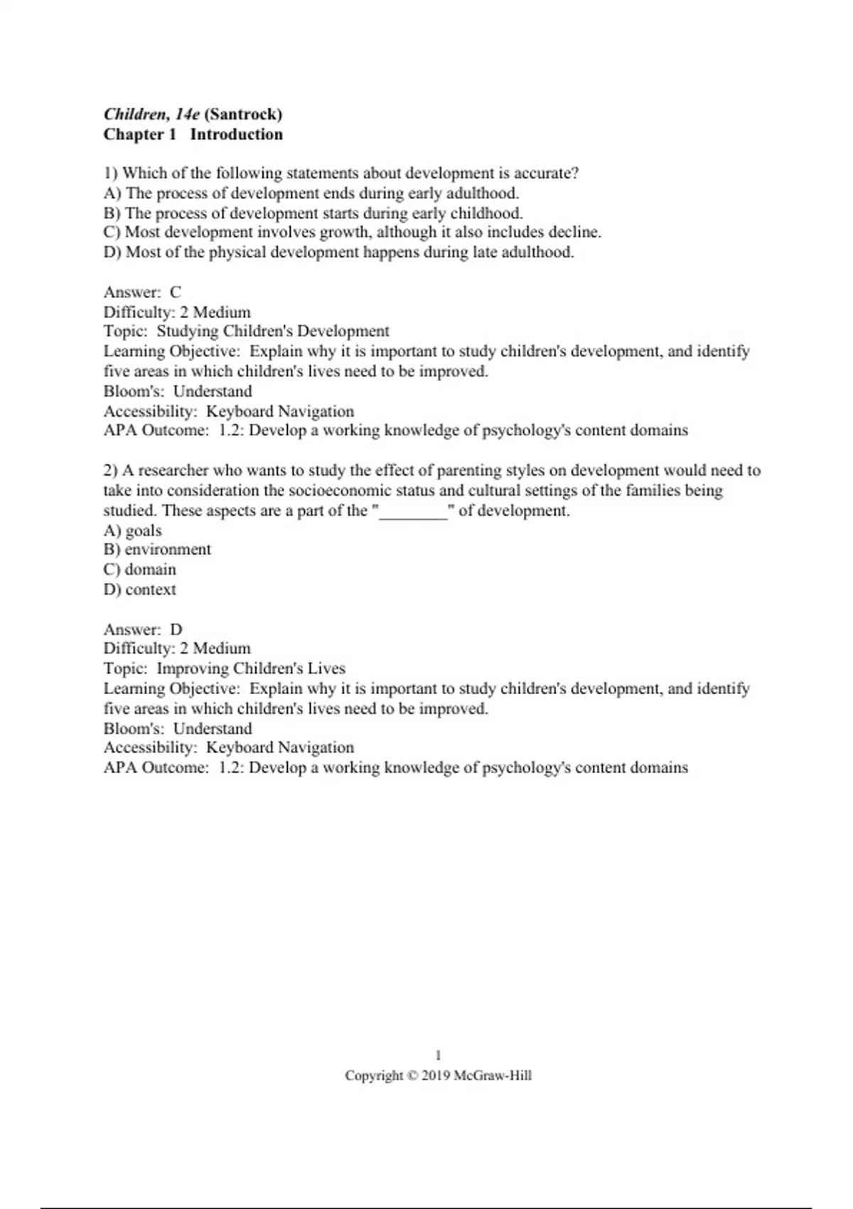 2) A researcher who wants to study the effect of parenting styles on development would need to take into consideration the socioeconomic status and cultural settings of the families being studied. These aspects are a part of the "________" of development.