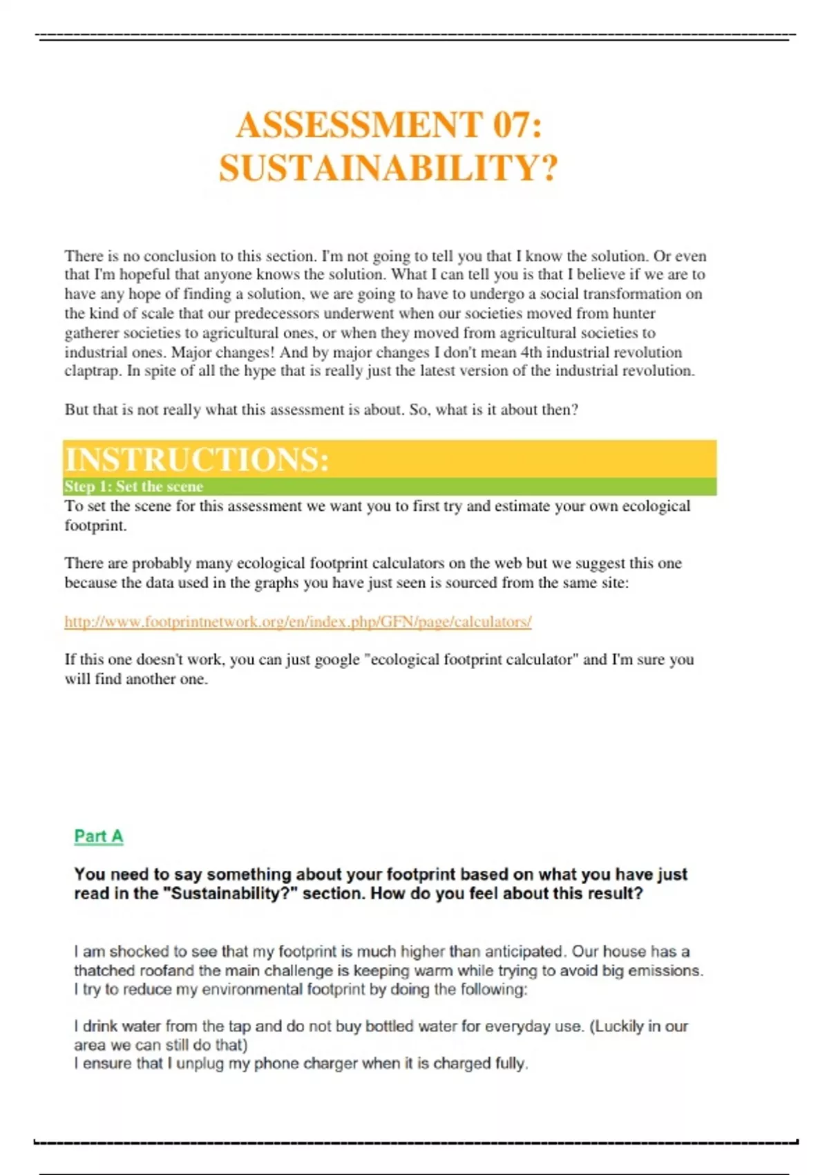 To set the scene for this assessment we want you to first try and estimate your own ecological