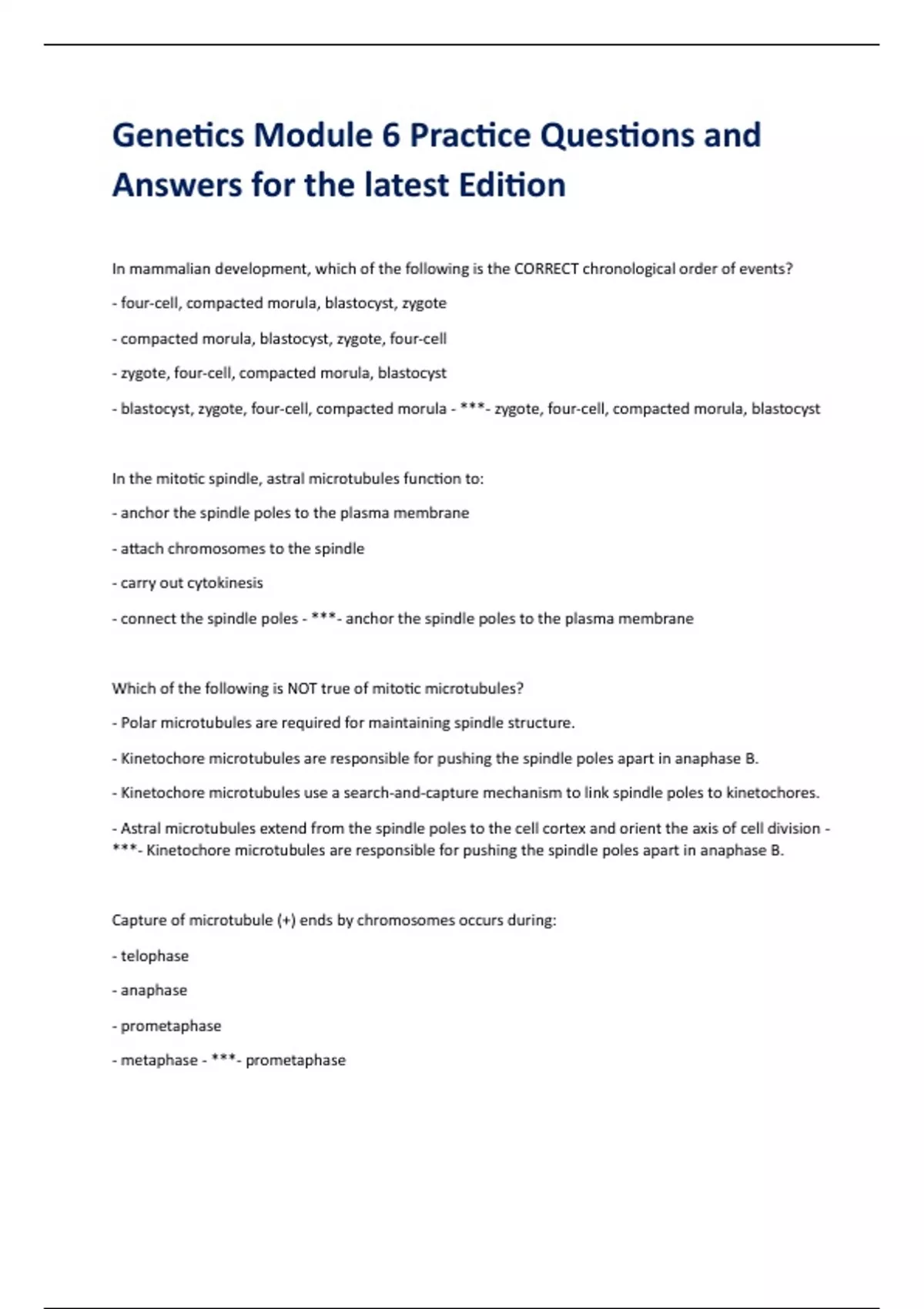 Genetics Module 6 Practice Questions and Answers for the latest Edition