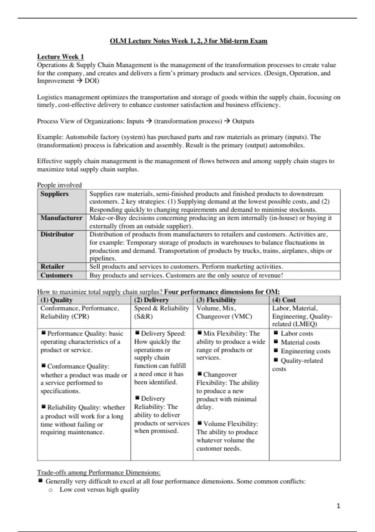 How to maximize total supply chain surplus? Four performance dimensions for OM: