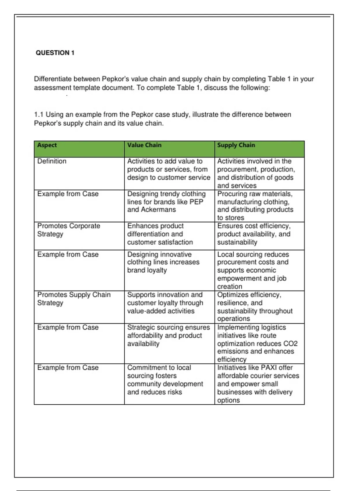 Differentiate between Pepkor’s value chain and supply chain by completing Table 1 in your
