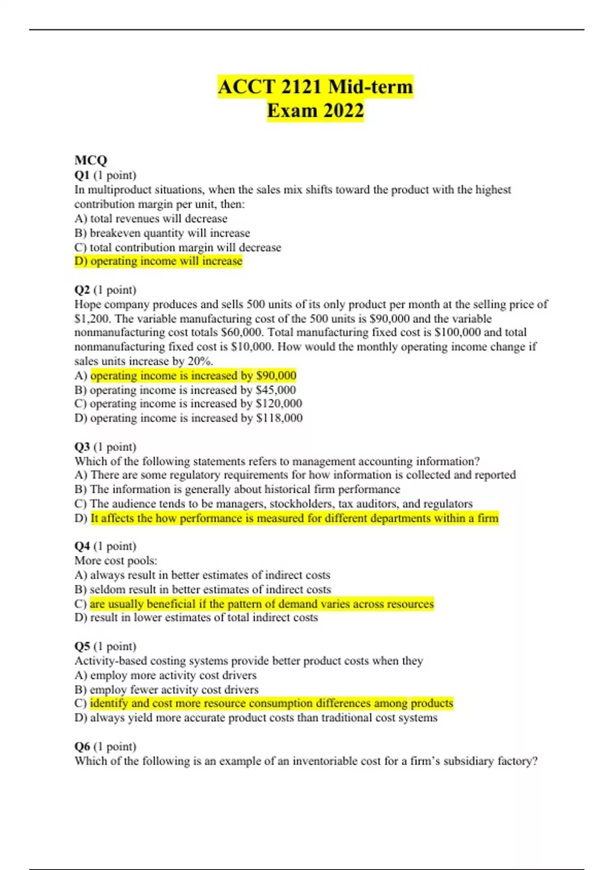 acct 2121 mid term exam 2022 mcq q1 1 point in