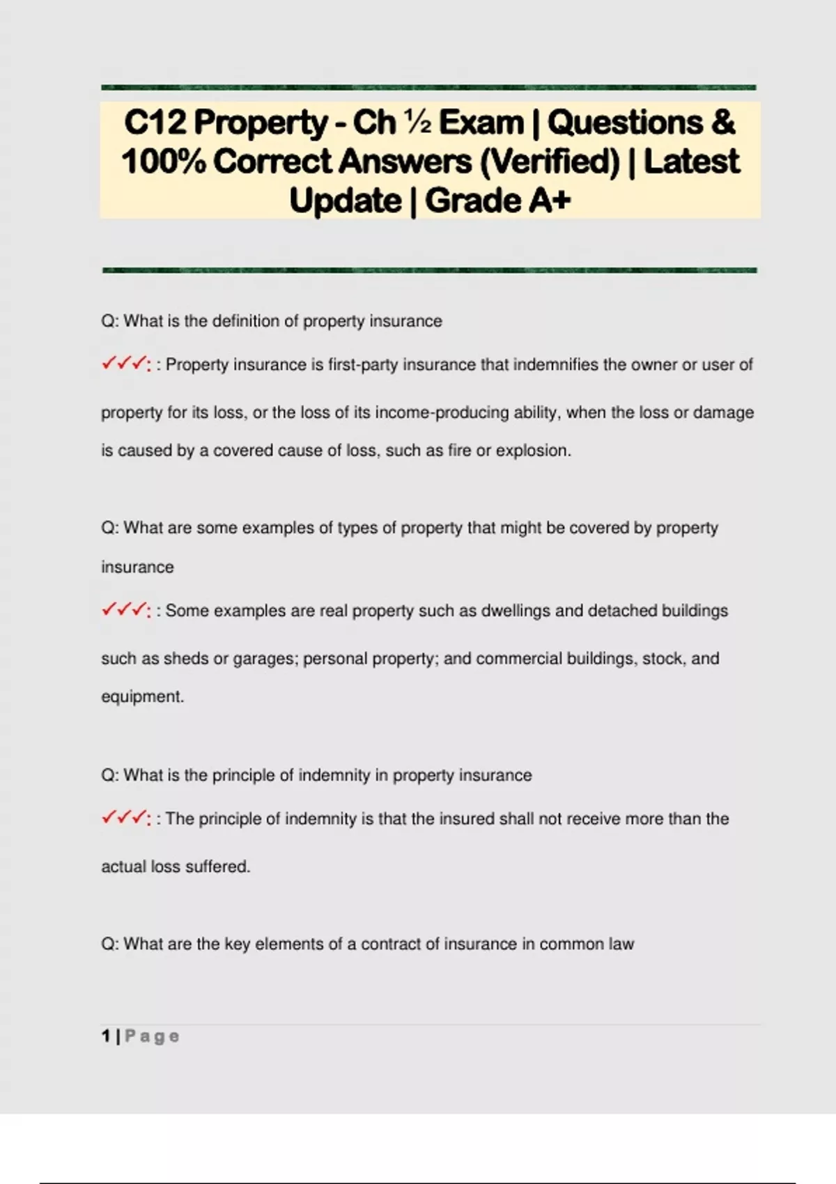 C12 Property - Ch ½ Exam | Questions & 100% Correct Answers (Verified) | Latest Update | Grade A+C12 Property - Ch ½ Exam | Questions & 100% Correct Answers (Verified) | Latest Update | Grade A+
