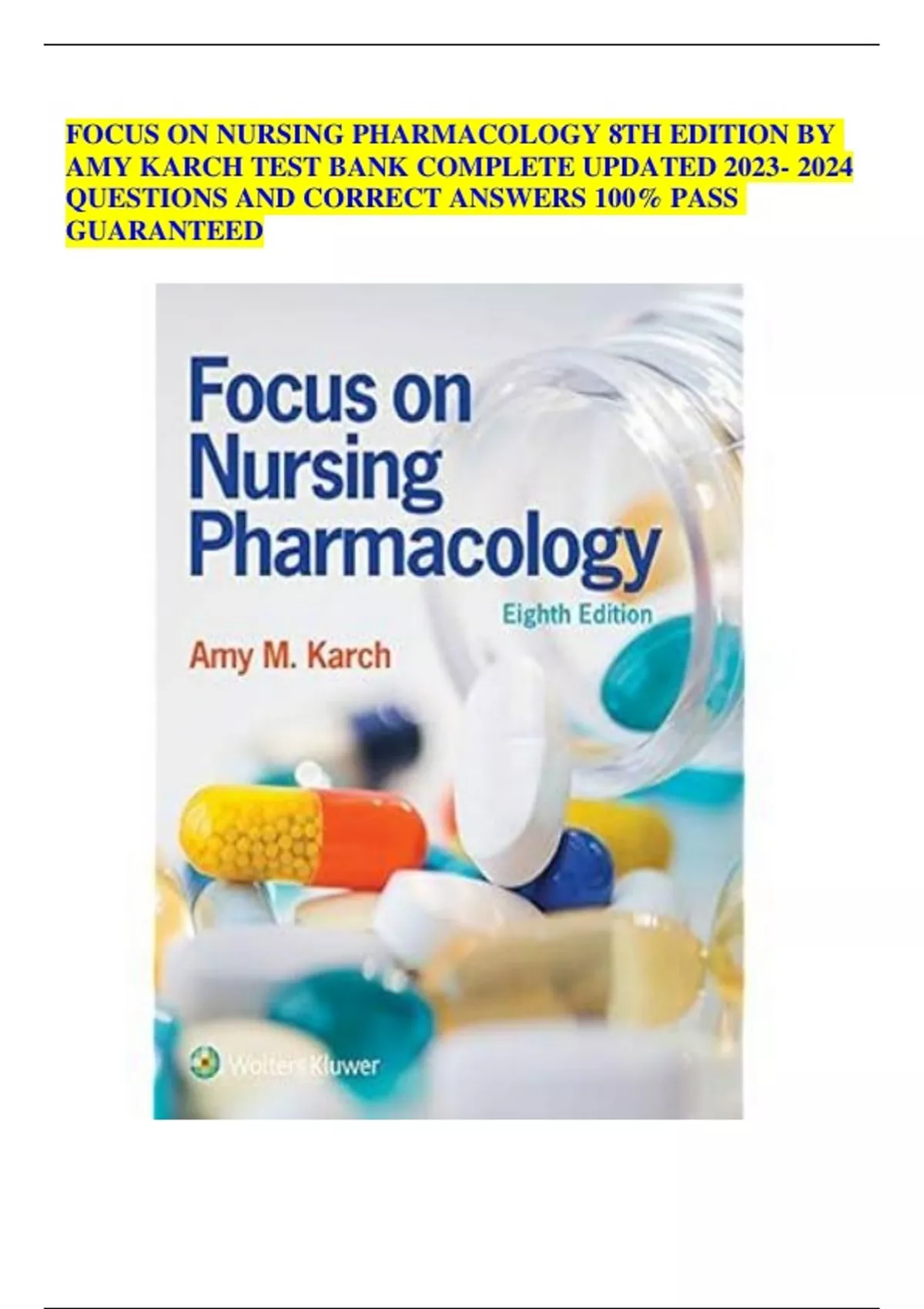 FOCUS ON NURSING PHARMACOLOGY 8TH EDITION BY AMY KARCH TEST BANK COMPLETE UPDATED QUESTIONS AND CORRECT ANSWERS 100% PASS GUARANTEED