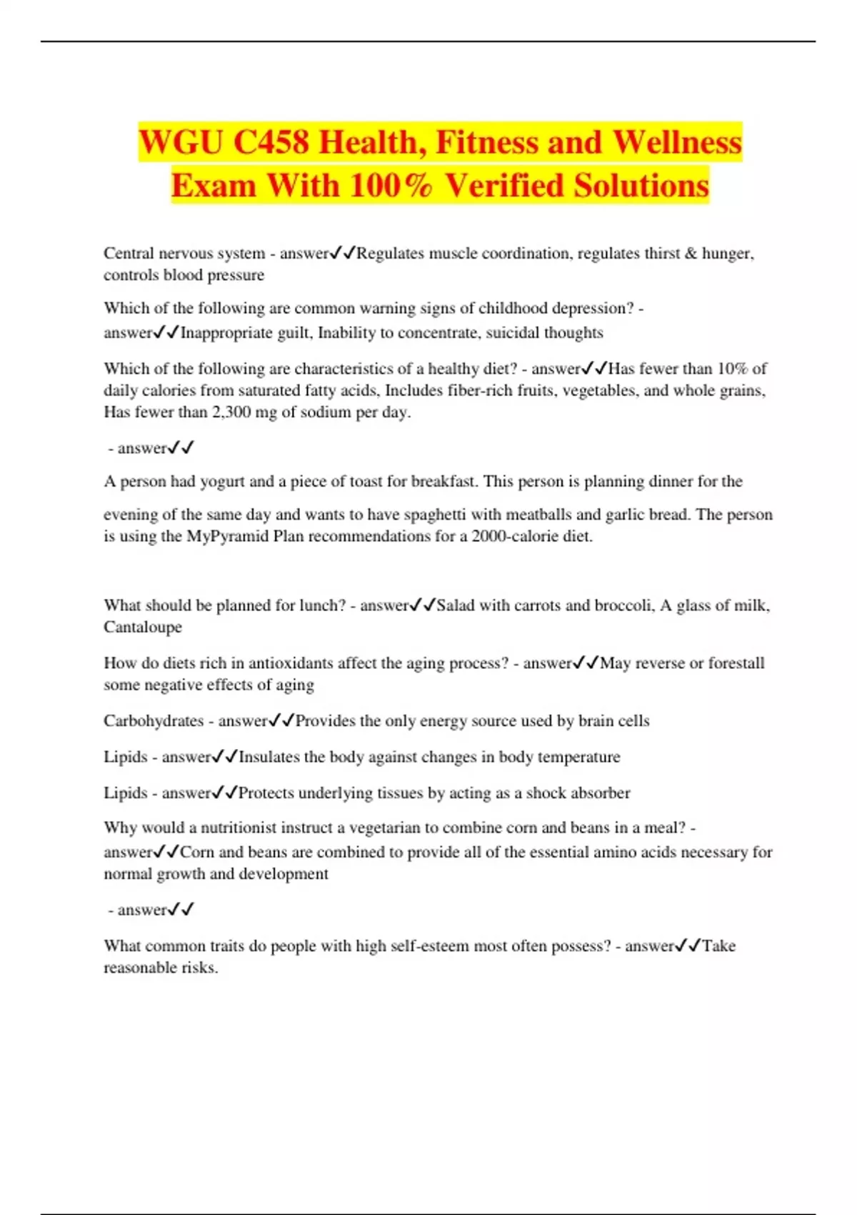 WGU C458 Health, Fitness and Wellness Exam With 100% Verified Solutions