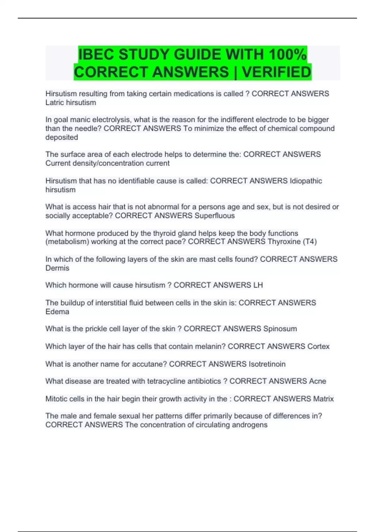 IBEC STUDY GUIDE WITH 100% CORRECT ANSWERS | VERIFIED