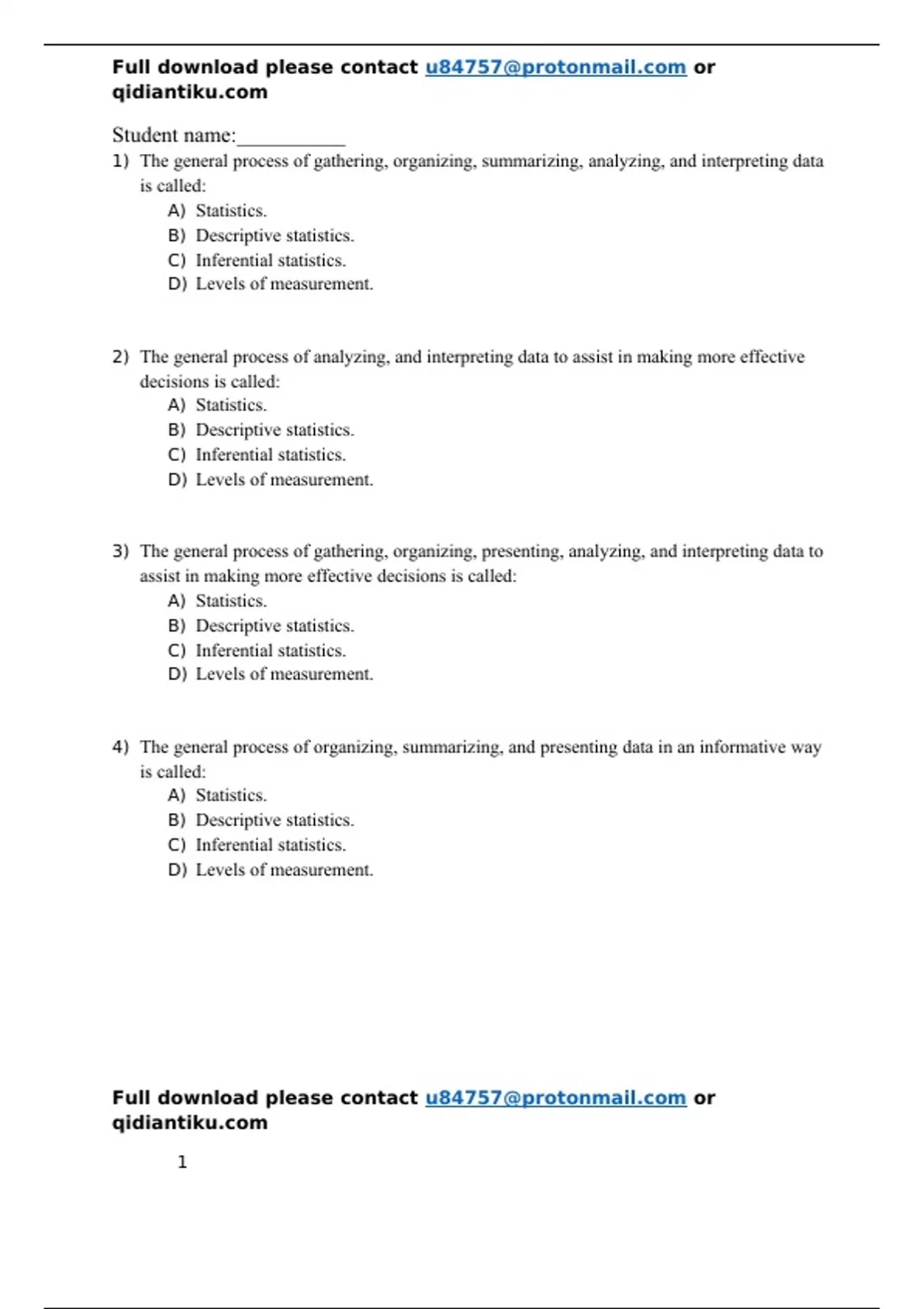 1) The general process of gathering, organizing, summarizing, analyzing, and interpreting data