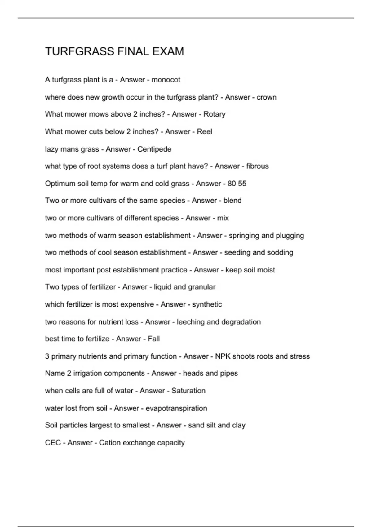 TURFGRASS FINAL EXAM