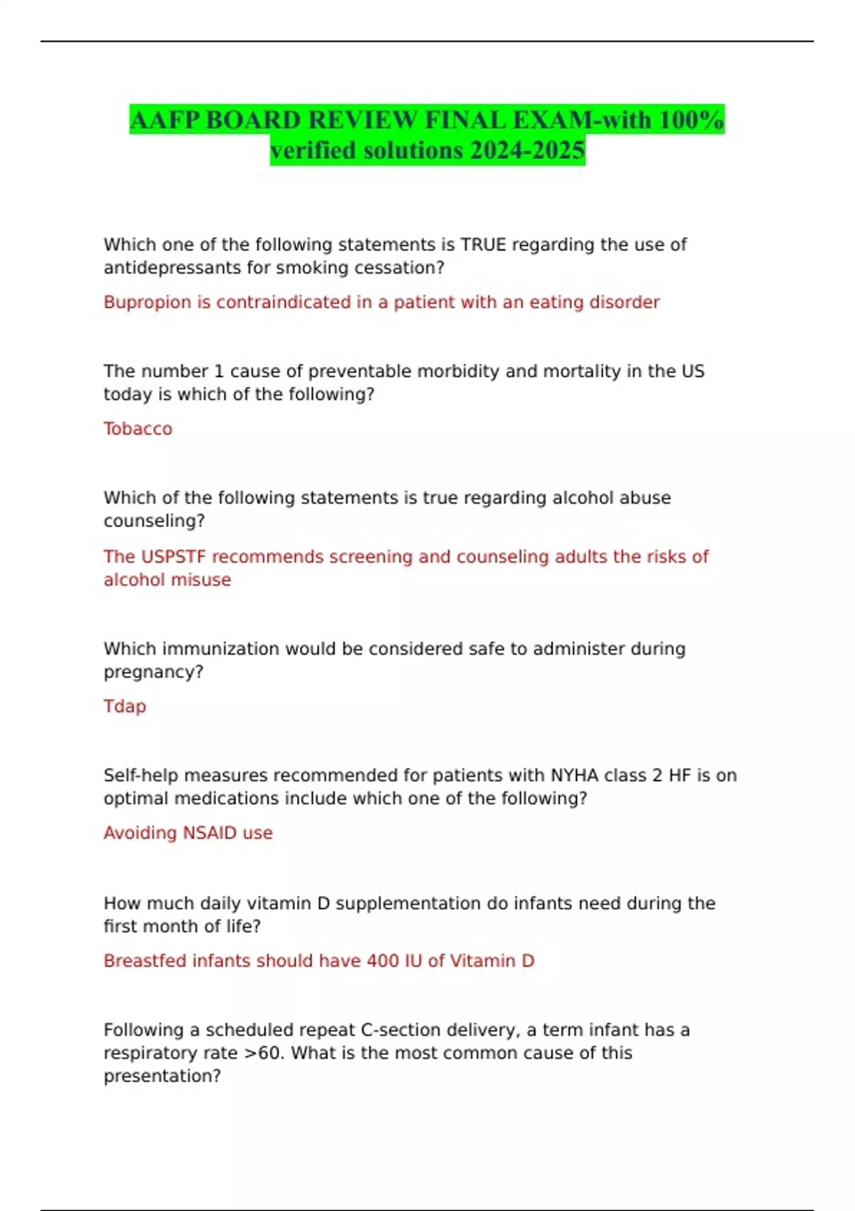 AAFP BOARD REVIEW FINAL EXAM-with 100% verified solutions