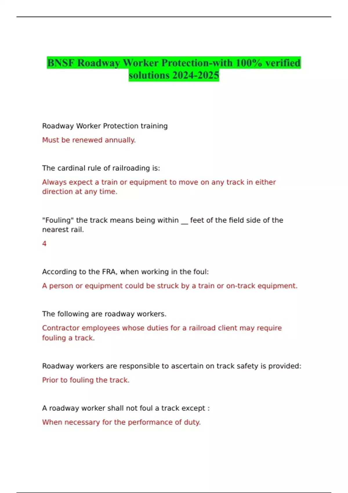 BNSF Roadway Worker Protection-with 100% verified solutions