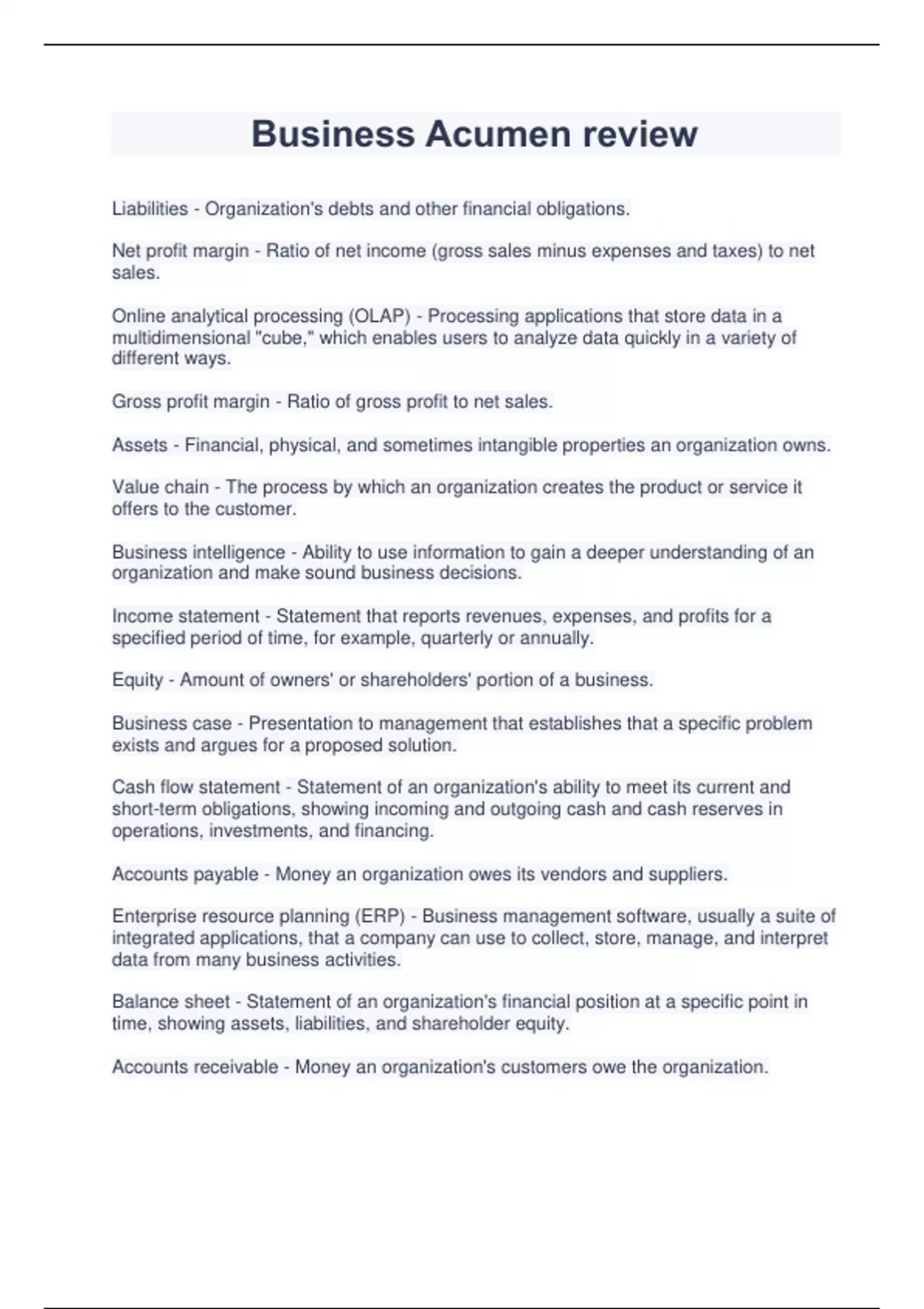 Business Acumen review