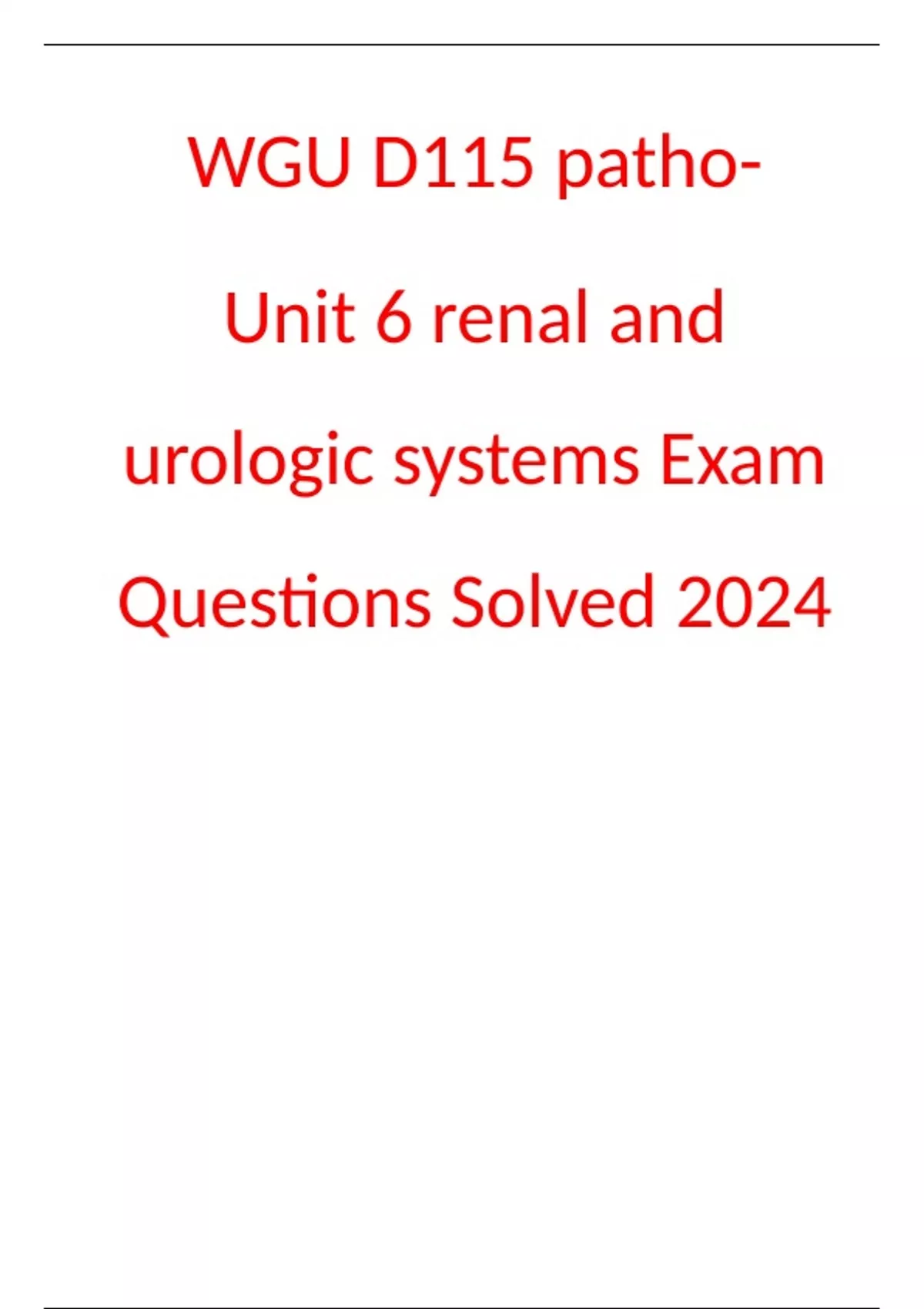 WGU D115 patho- Unit 6 renal and urologic systems Exam Questions Solved 2024
