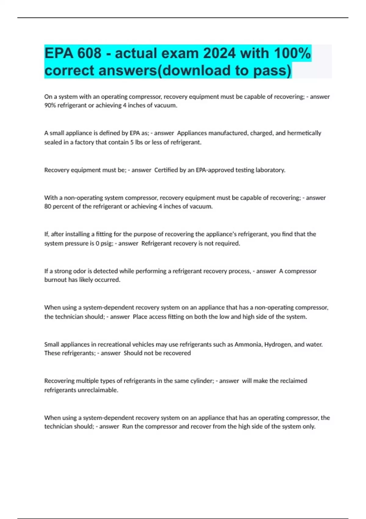 EPA 608 Type 2 Practice actual exam 2024 with 100% correct answers(download to pass)