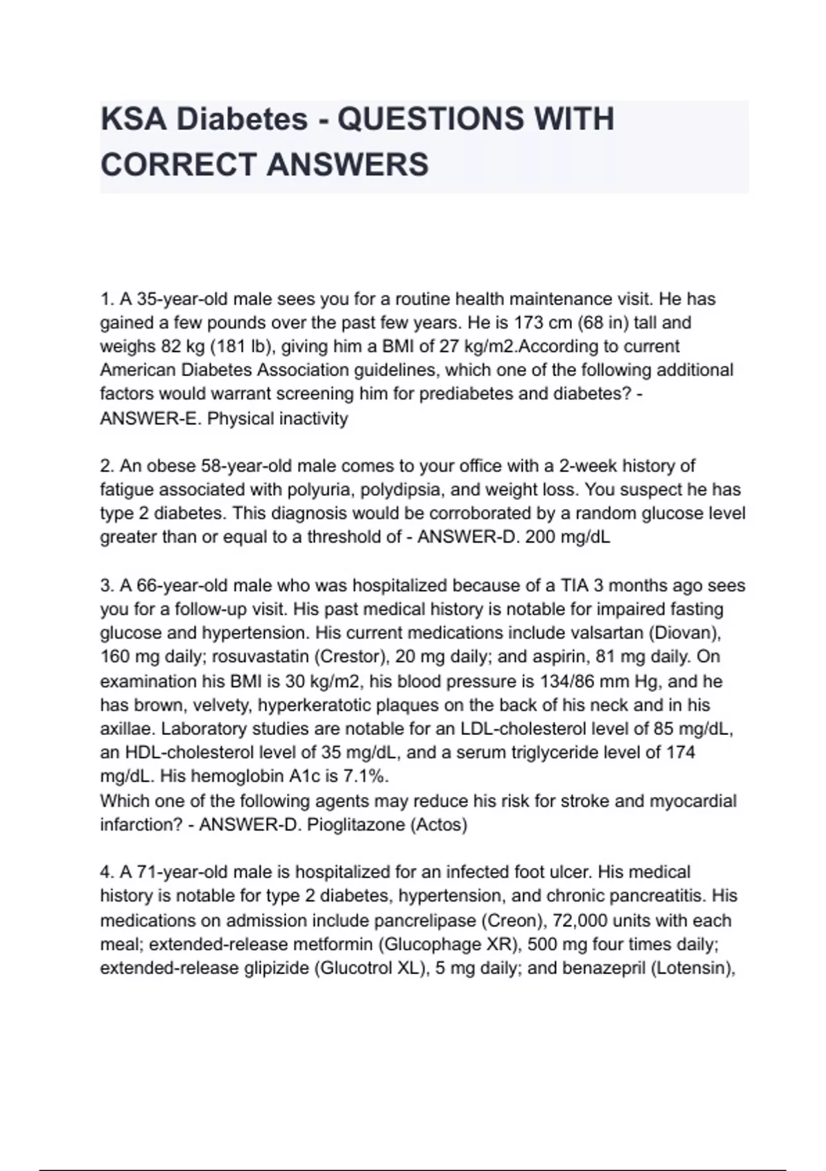 KSA Diabetes - QUESTIONS WITH CORRECT ANSWERS