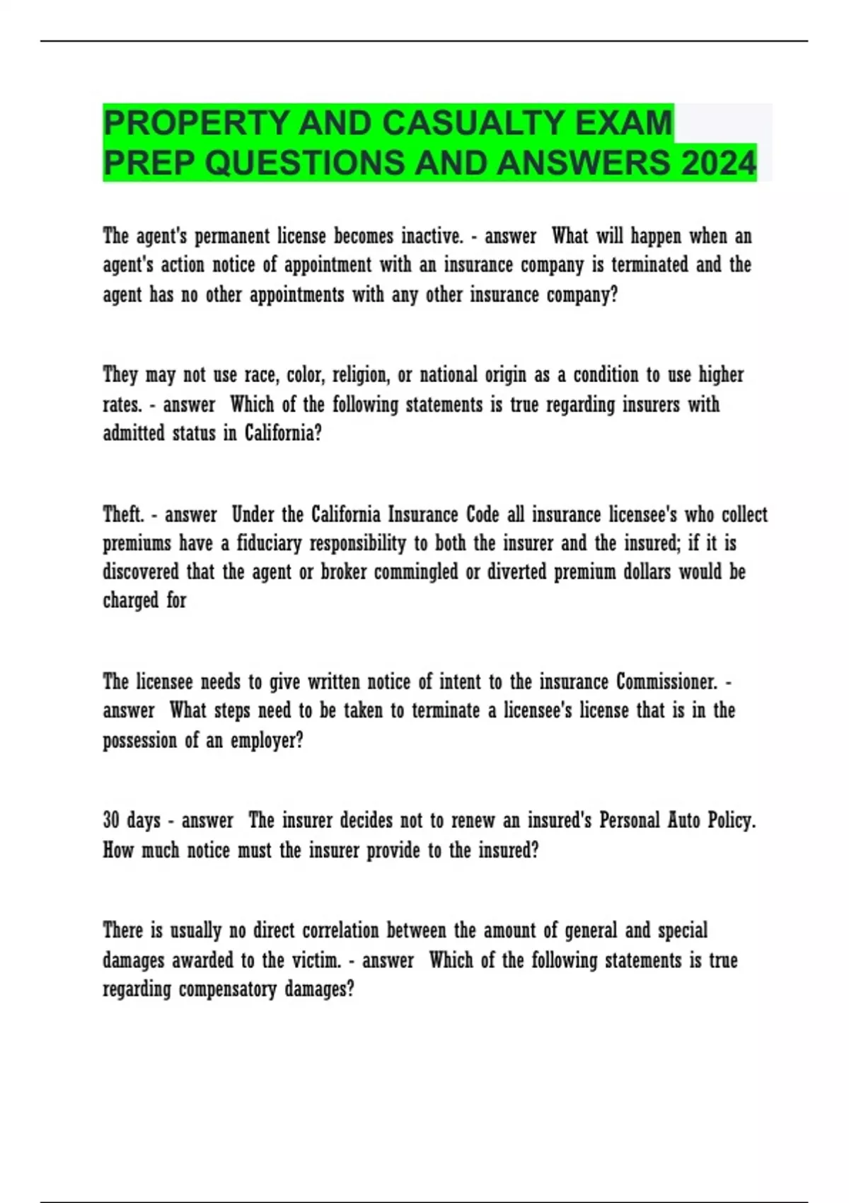 PROPERTY AND CASUALTY EXAM PREP QUESTIONS FULLY SOLVED & UPDATED 2024.