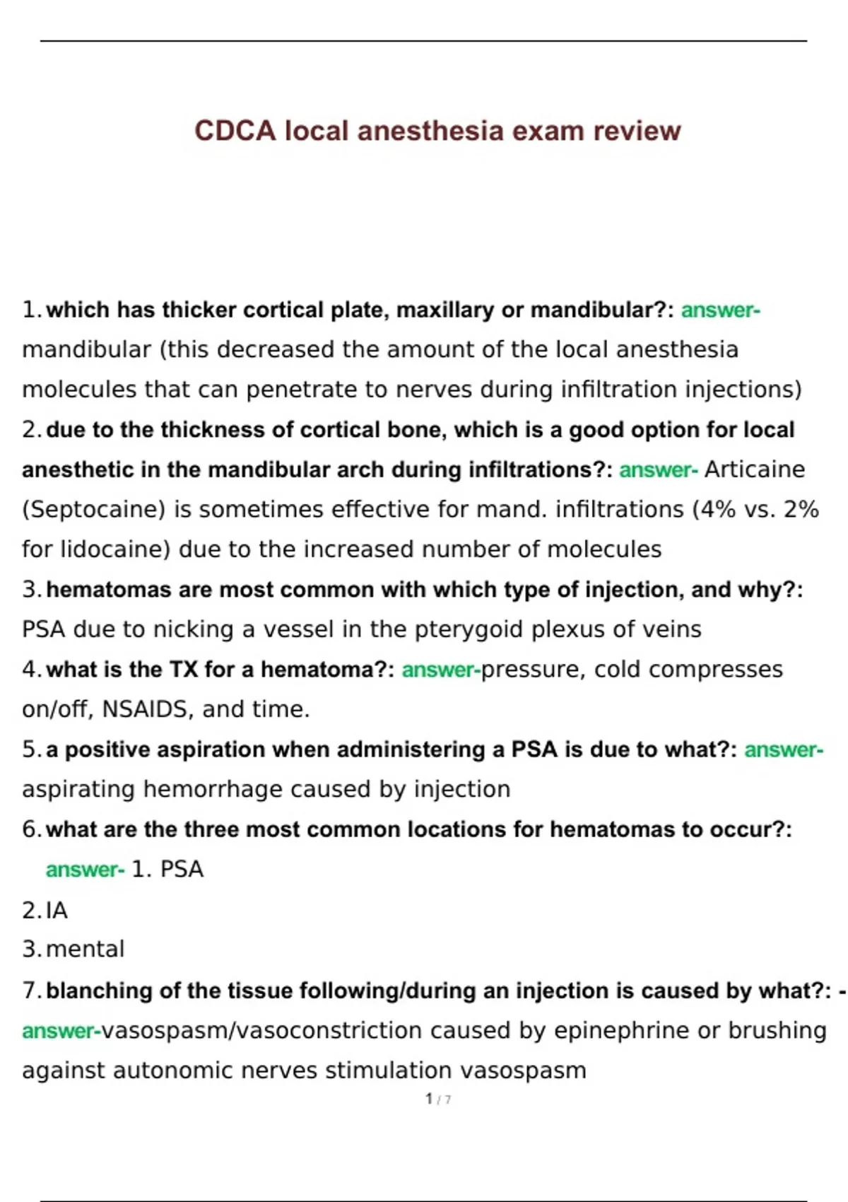 cdca local anesthesia exam review 2024 with comple