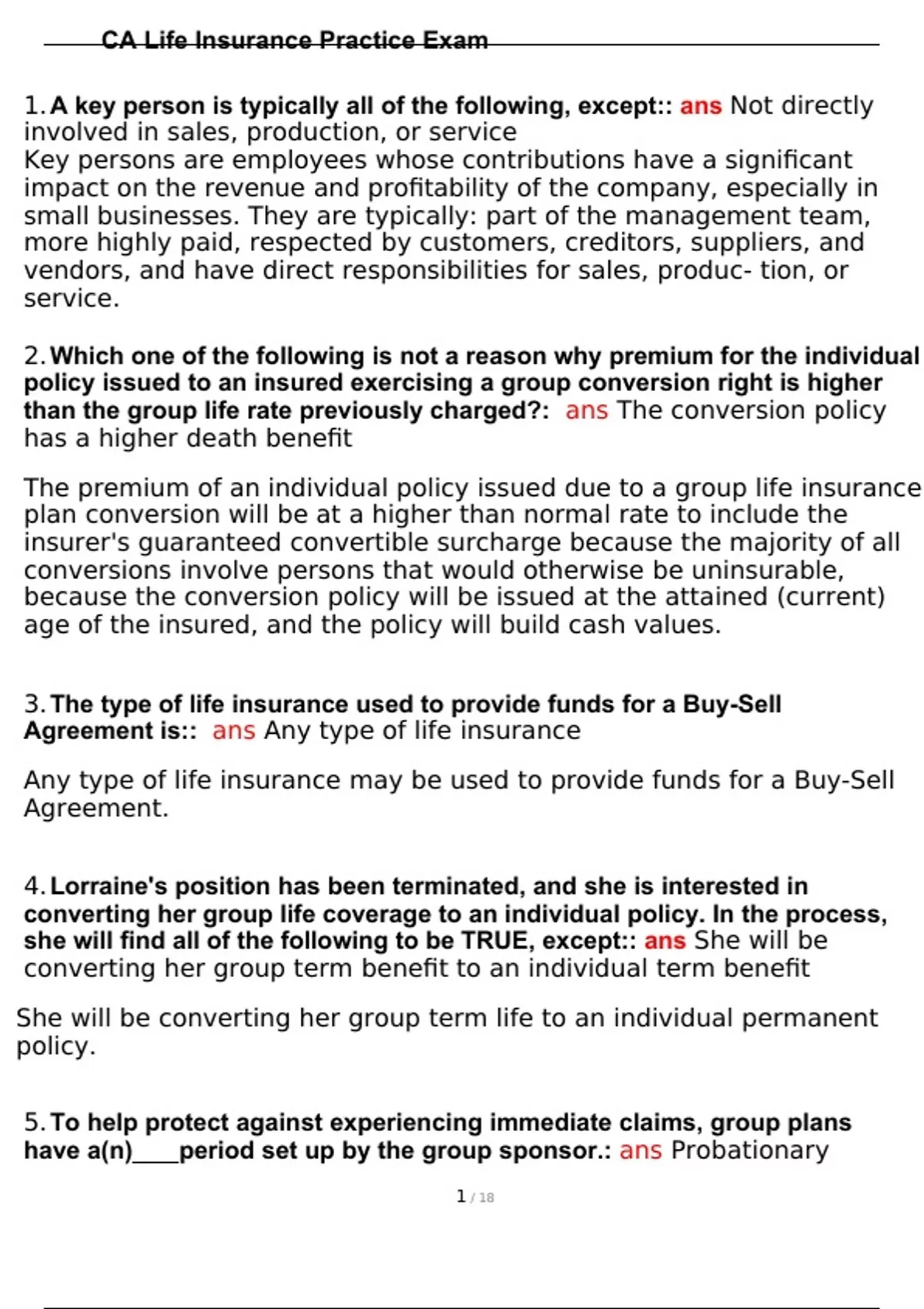 CA Life Insurance Practice Exam Questions and Correct Answer1.