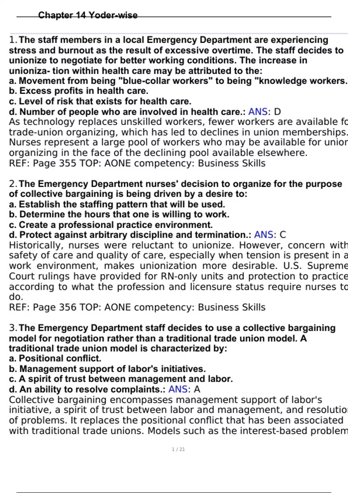 chapter 14 yoder wise questions and correct answer