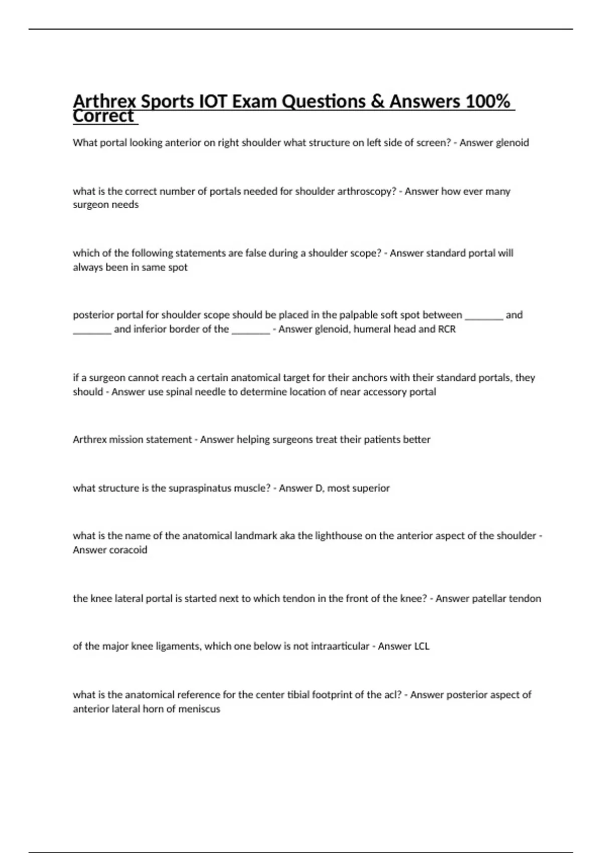Arthrex Sports IOT Exam Questions & Answers 100% Correct