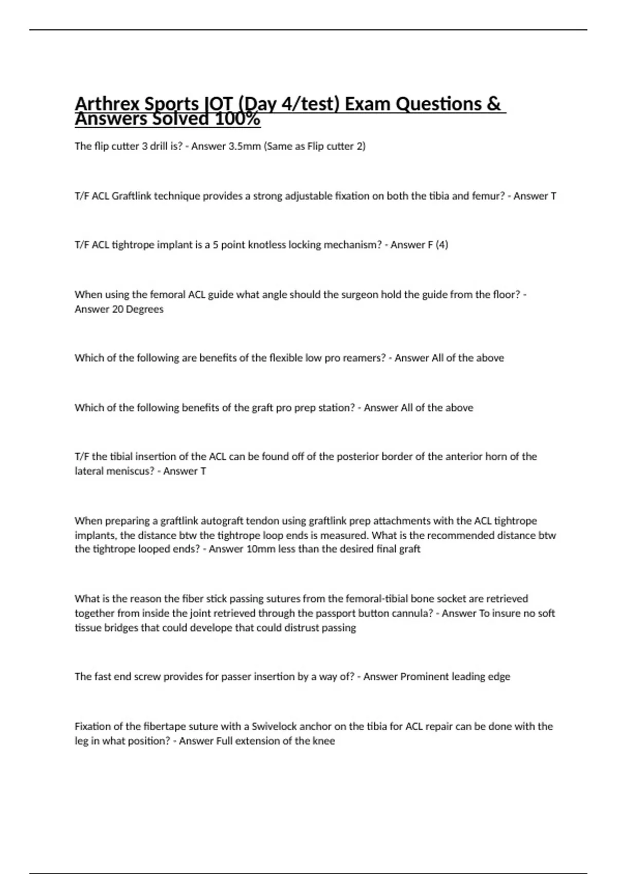 Arthrex Sports IOT (Day 4/test) Exam Questions & Answers Solved 100%
